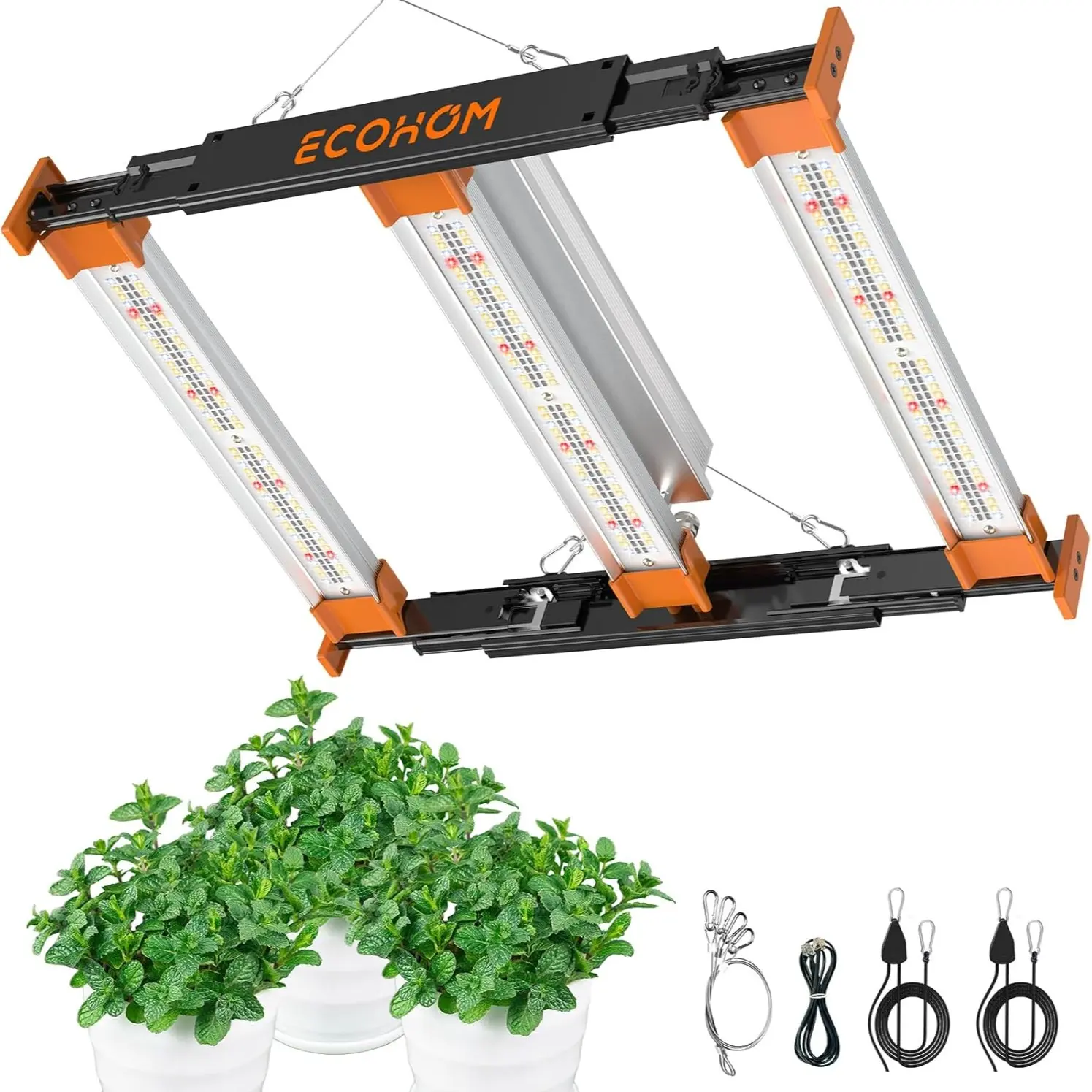 ·【Complete Grow Tent Solution】Ready to hang: Kit includes LED grow lights + 2x steel ropes (7.5") + 2x adjustable nylon hangers (6.6 ft) + detachable driver + power cord (6 ft) + screws. Detachable design isolates heat from LEDs, preventing overheating and extending lifespan. Perfect for hydroponics, soil beds, or vertical farming in 3x3 ft tents.