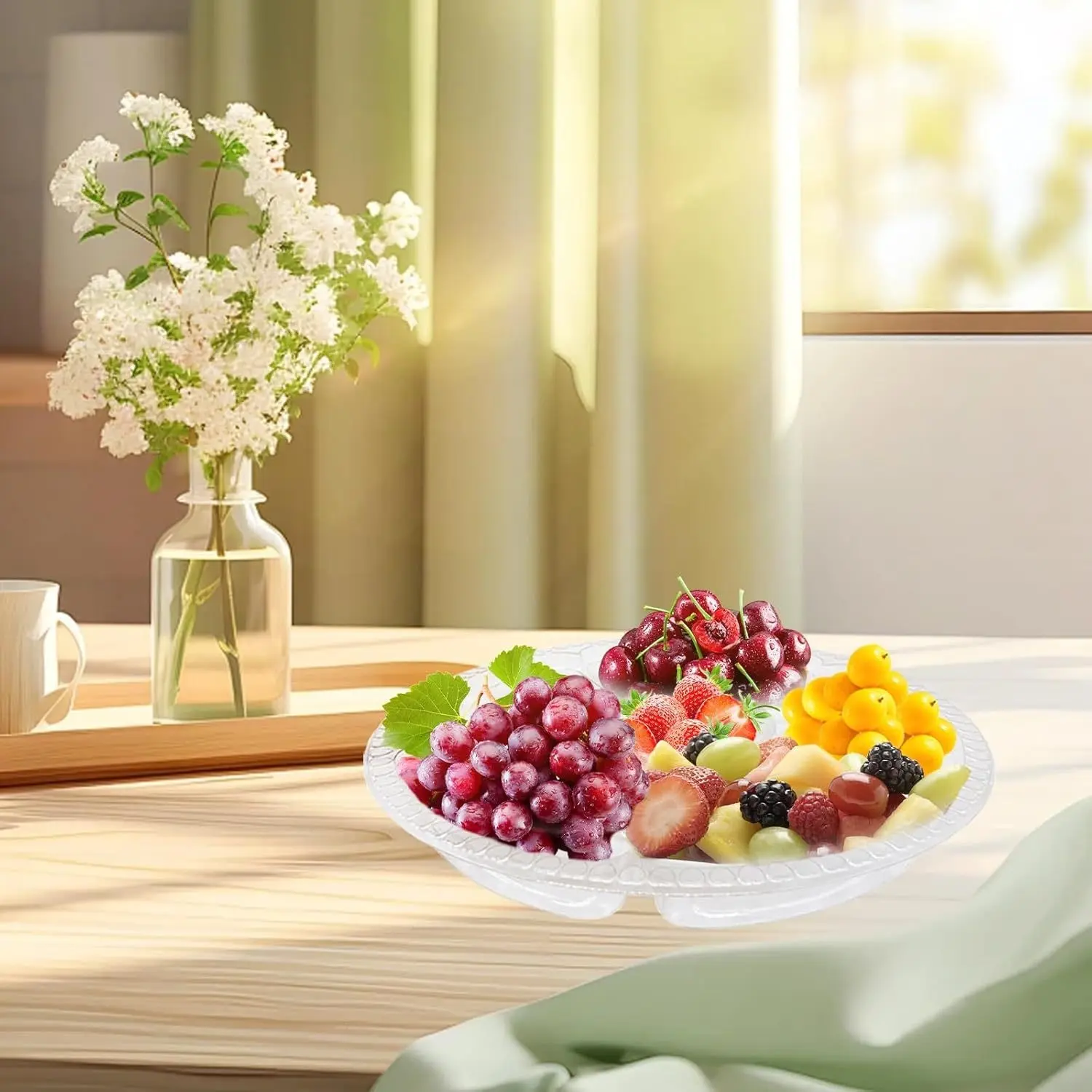 10 sets (10 lids+10 plates) Round Plastic Serving Tray, Clear Round Plastic Veggie Tray with Lid, Disposable Food Storage Containers 6 Divided Compartment Container for Fruit Nut Snack