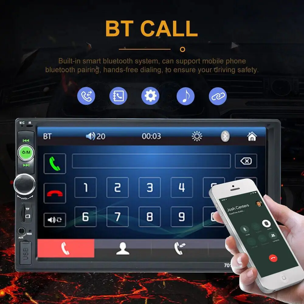 Bileeko 2din Car Radio Mp5, 7 Inch HD Touchscreen, Bluetooth-compatible/fm/USB/TF/aux Full Interface, Multimedia Player, Universal Fit, Car Video Players