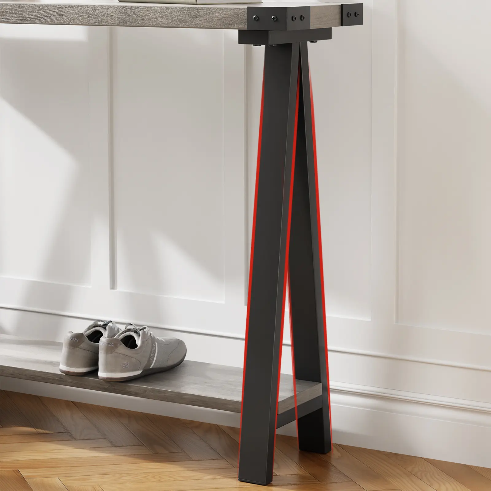 ·High Quality Construction: Crafted from high-quality MDF and supported by a sturdy metal frame, this console table offers durability and long-lasting stability. The sophisticated V-shaped iron legs not only ensure structural integrity but also add a touch of elegance to any decor.