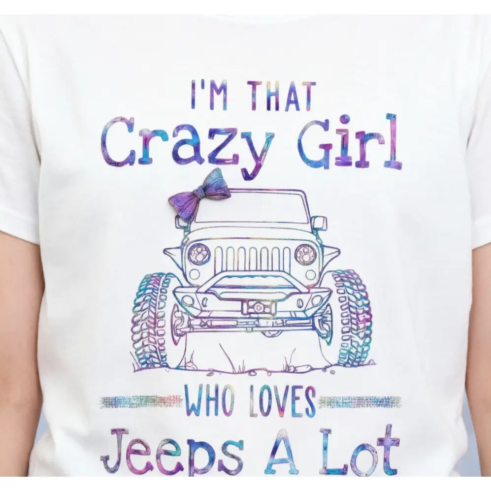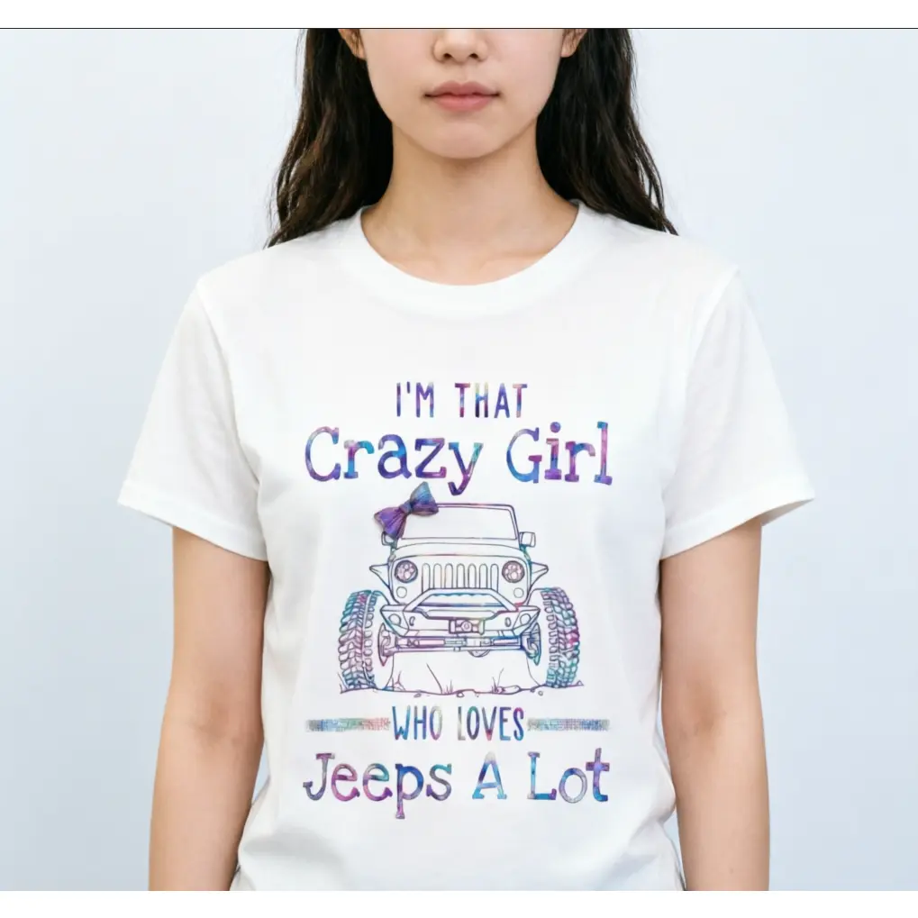 She's not obsessed… okay, maybe a little. This "I'm That Crazy Girl Who Loves Jeep A Lot" tee is for the Jeep girl who lives for muddy trails, wind-in-her-hair freedom, and that unmistakable Jeep wave. Soft cotton, relaxed casual fit—perfect for off-road adventures, car meets, and summer cruising with the doors off.