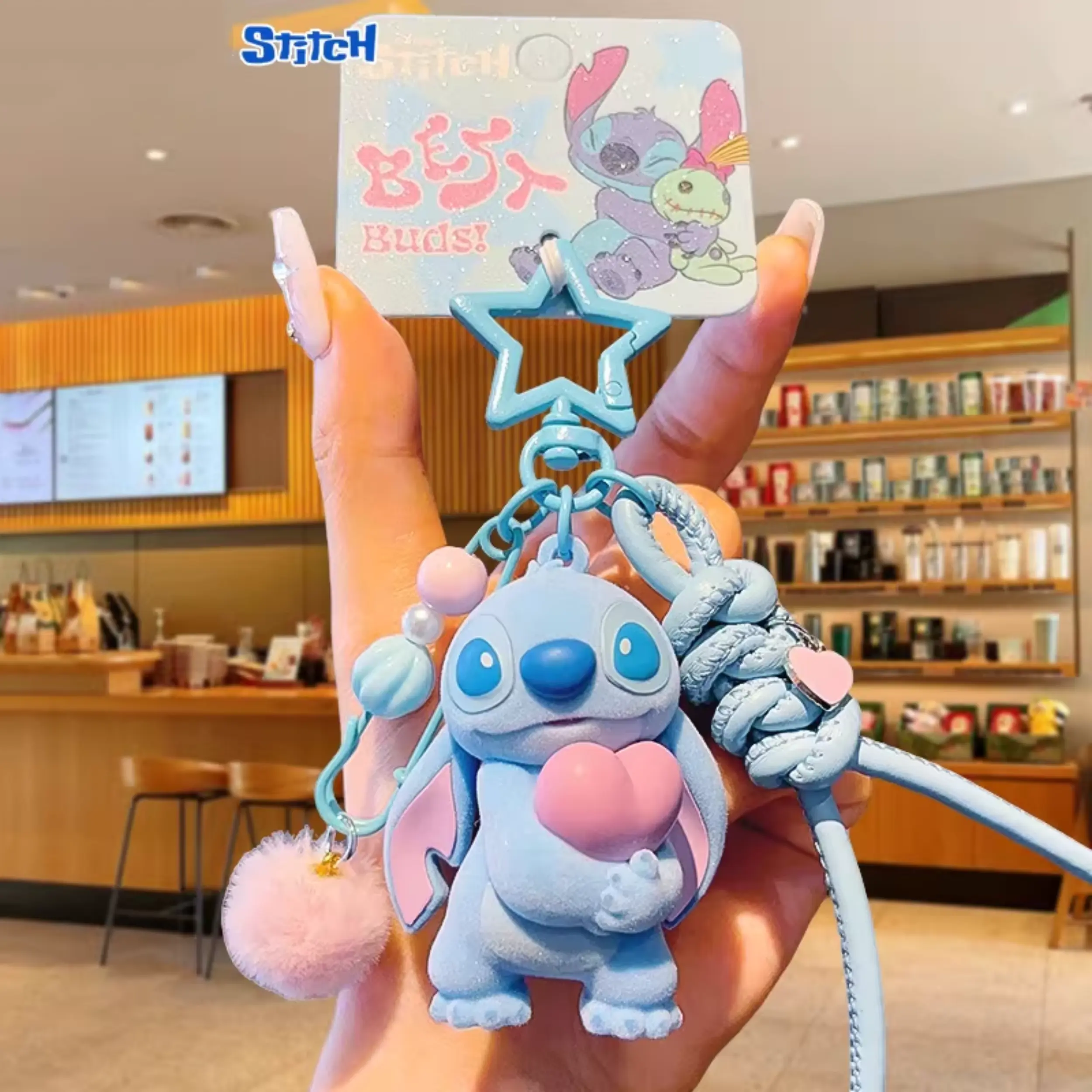 Unlike ordinary plush keychains, this Stitch hug charm features a luxurious flocked (velvet) finish that feels incredibly soft and smooth to the touch. The unique texture resembles a peach’s fuzz – gentle, warm, and totally addictive to hold. It‘s a sensory treat you won’t want to put down!