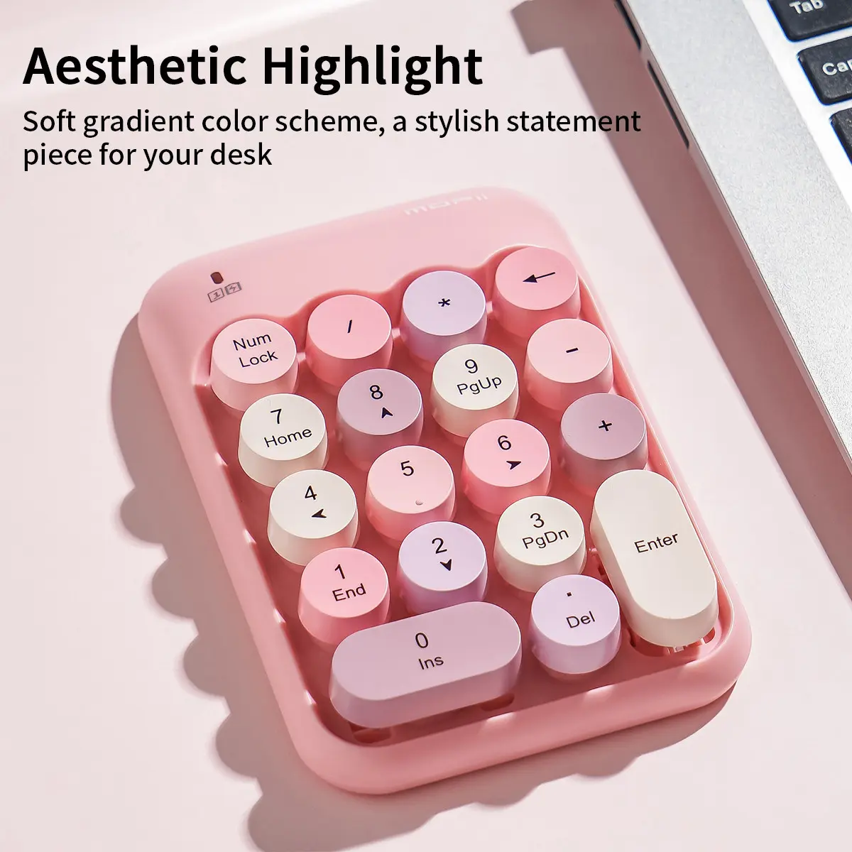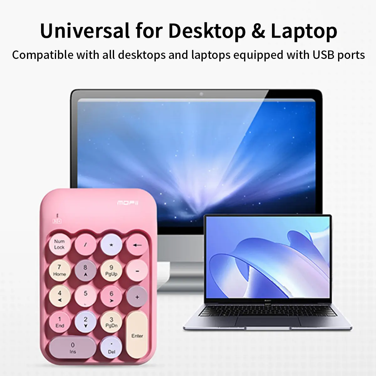 MOFii 1 Pack Macaron Pink Wireless Numeric Keypad, Portable Financial Office Keyboard, Universal for Laptop Desktop, US QWERTY (Battery Not Included)