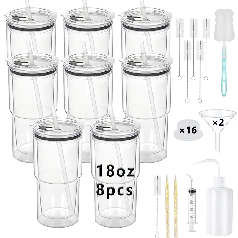 Create memorable spring gifts with this 8-pack of double wall clear snow globe tumblers. Each pre-drilled cup features a secure lid, straw, and complete DIY tool kit (includes 2 funnels, cup brush, straw brushes)—perfect for Easter craft parties, spring weddings, or graduation gifting. Double wall design keeps cold drinks refreshing. Fits most car cup holders.