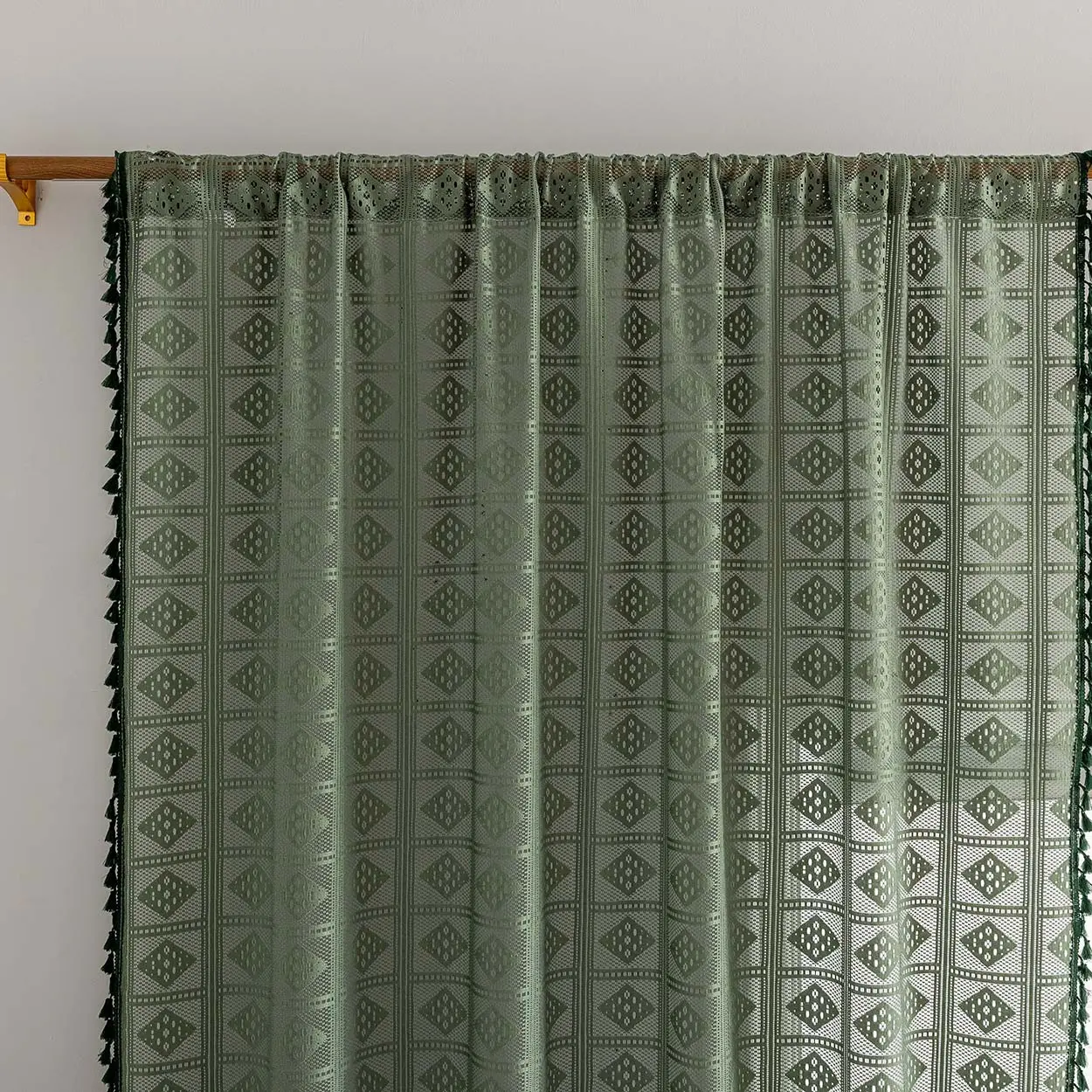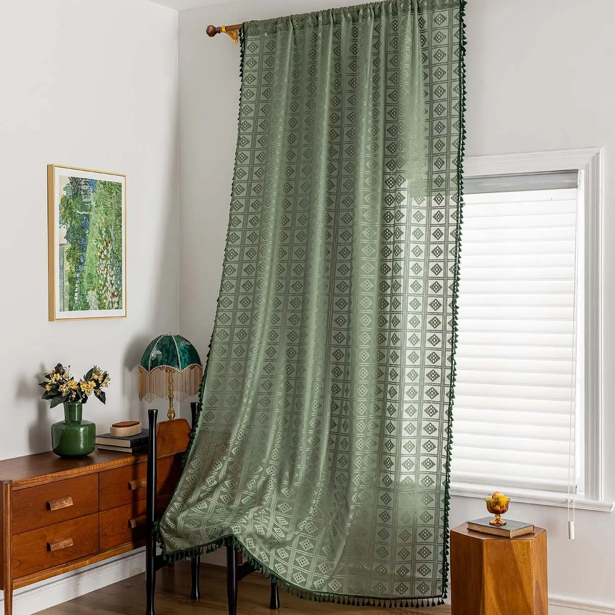 【Fringe Edge】: Adorned with fringe edges, enhancing the curtain's visual appeal and texture.
