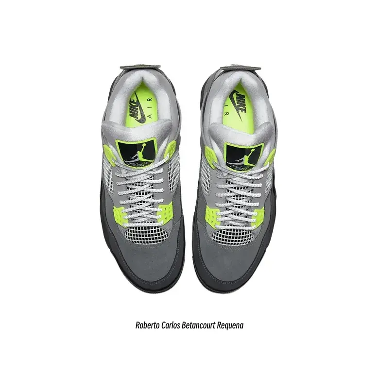 ·Elevate your wardrobe with these retro basketball shoes. The gray suede and mesh panels, along with neon green accents, make them a versatile addition. Whether for sports or everyday wear, these shoes are a great choice.