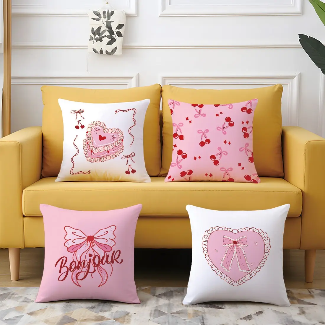 4pcs Cute Bow Cherry Illustration Pillow Covers, Single-Sided Print, Simple Home Decor for Living Room Bedroom, No Insert Included