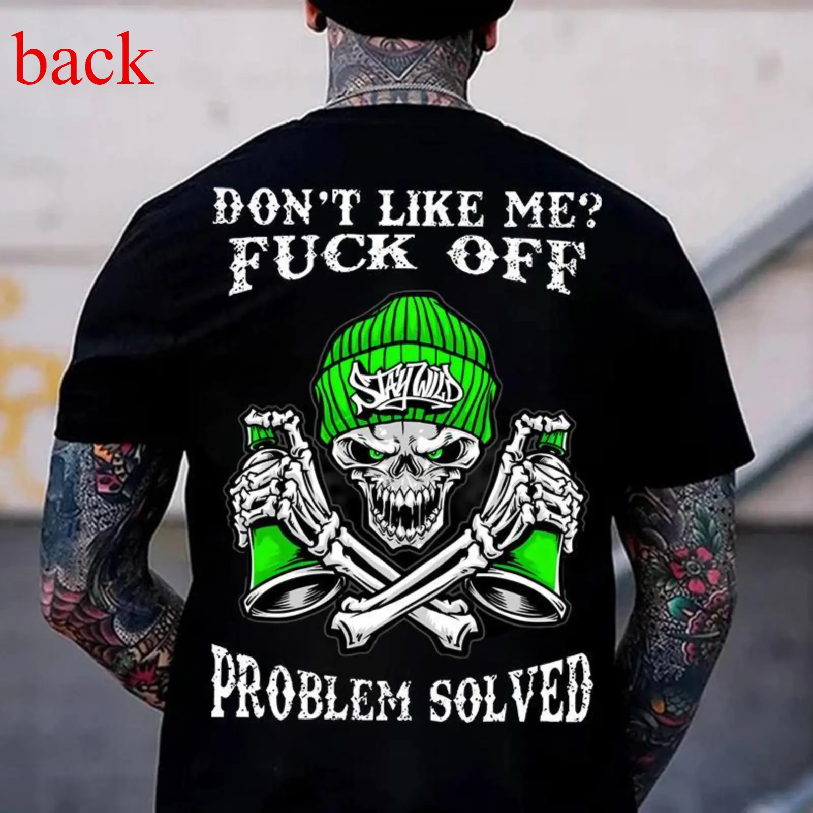 Don't Like Me Fuck Off Tattooed Graffiti Skull Street T-Shirt, Aesthetic Tattoo Merch, Summer Outfits Streetwear Vintage Men Graphic Tees Classic Clothes