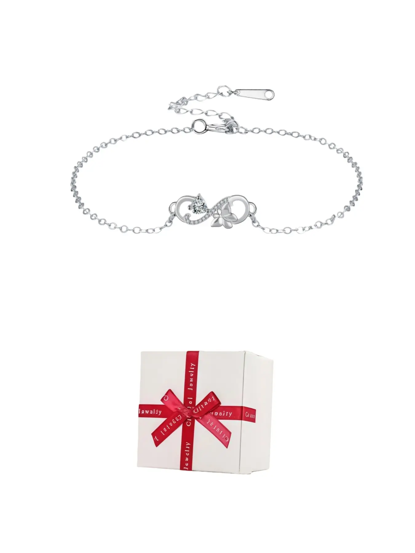 Butterfly Infinity · Diamond Glow Adjustable infinity symbol butterfly gem bracelet, delicate and sparkling.Paired with a surprise double-door preserved rose jewelry gift box.Ideal gift for birthdays, Mother’s Day and Valentine’s Day.