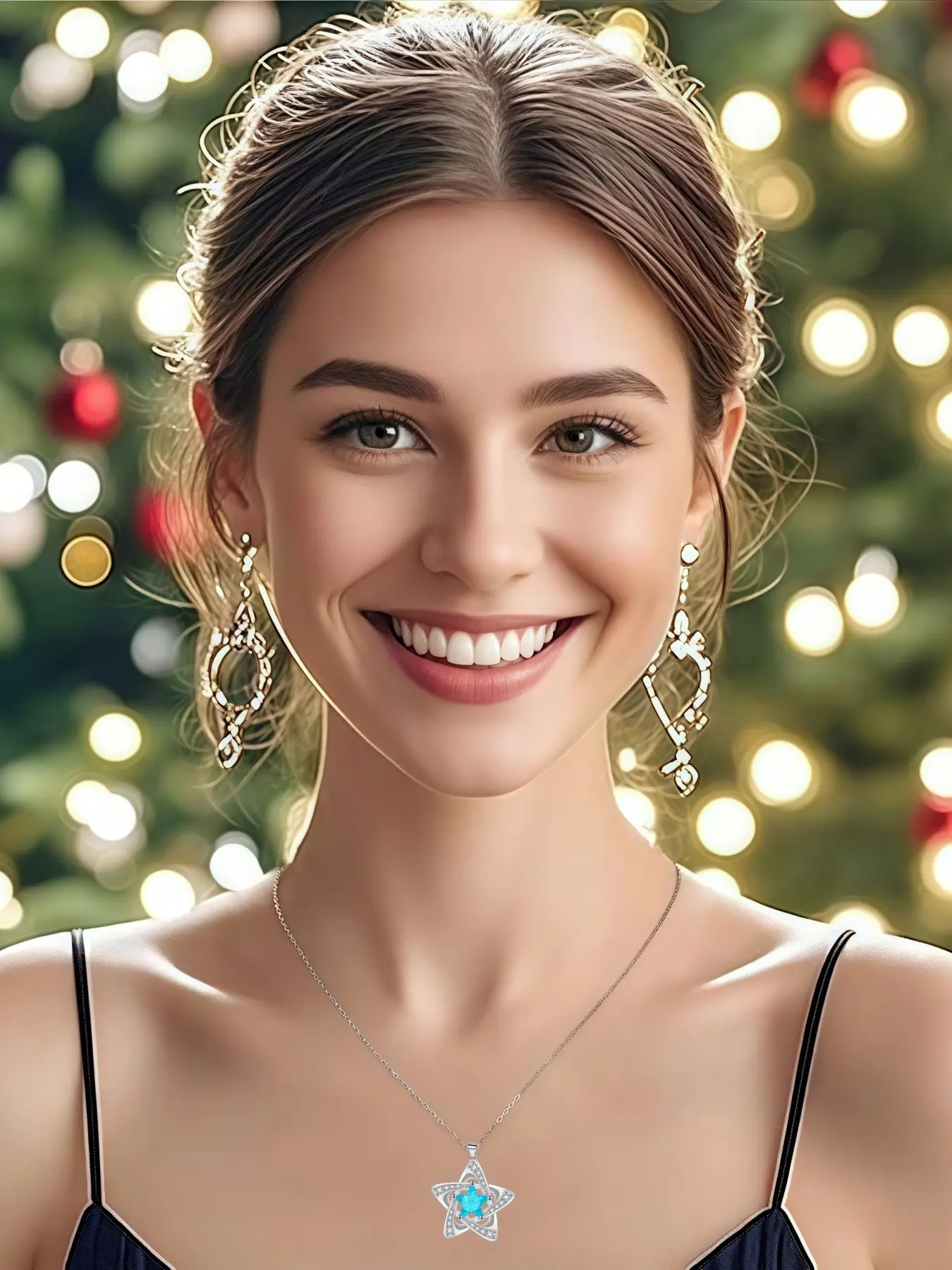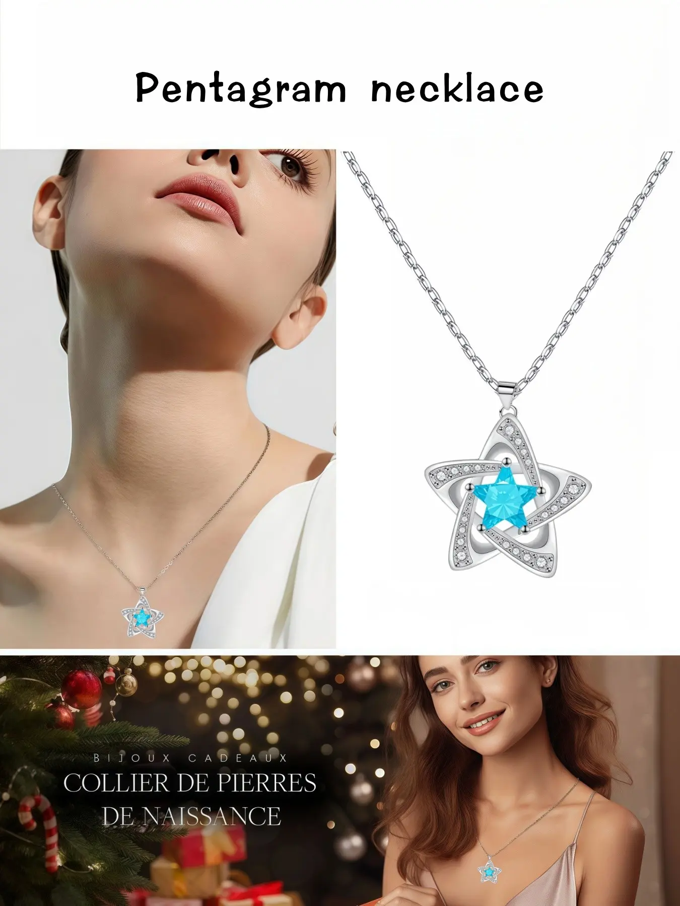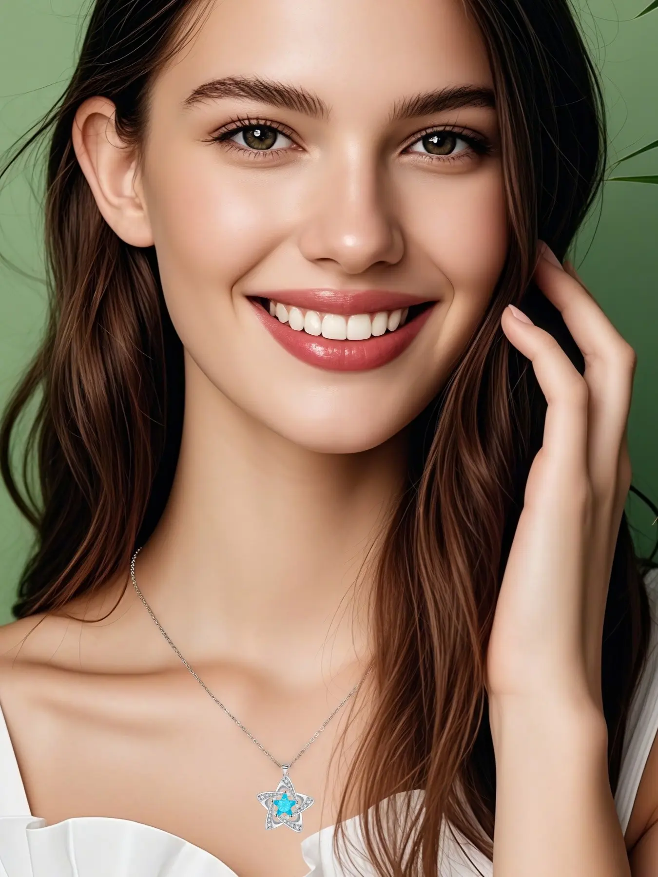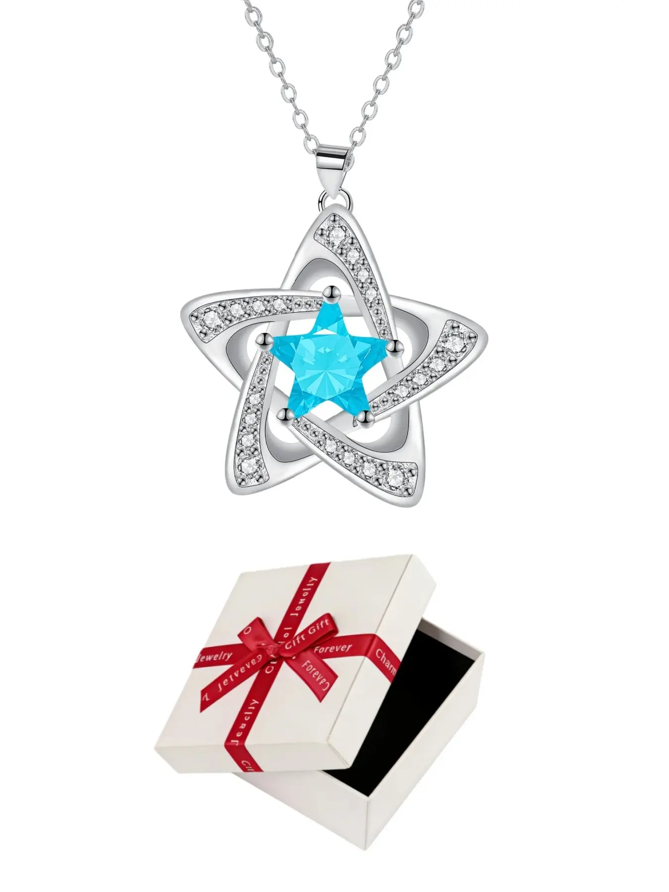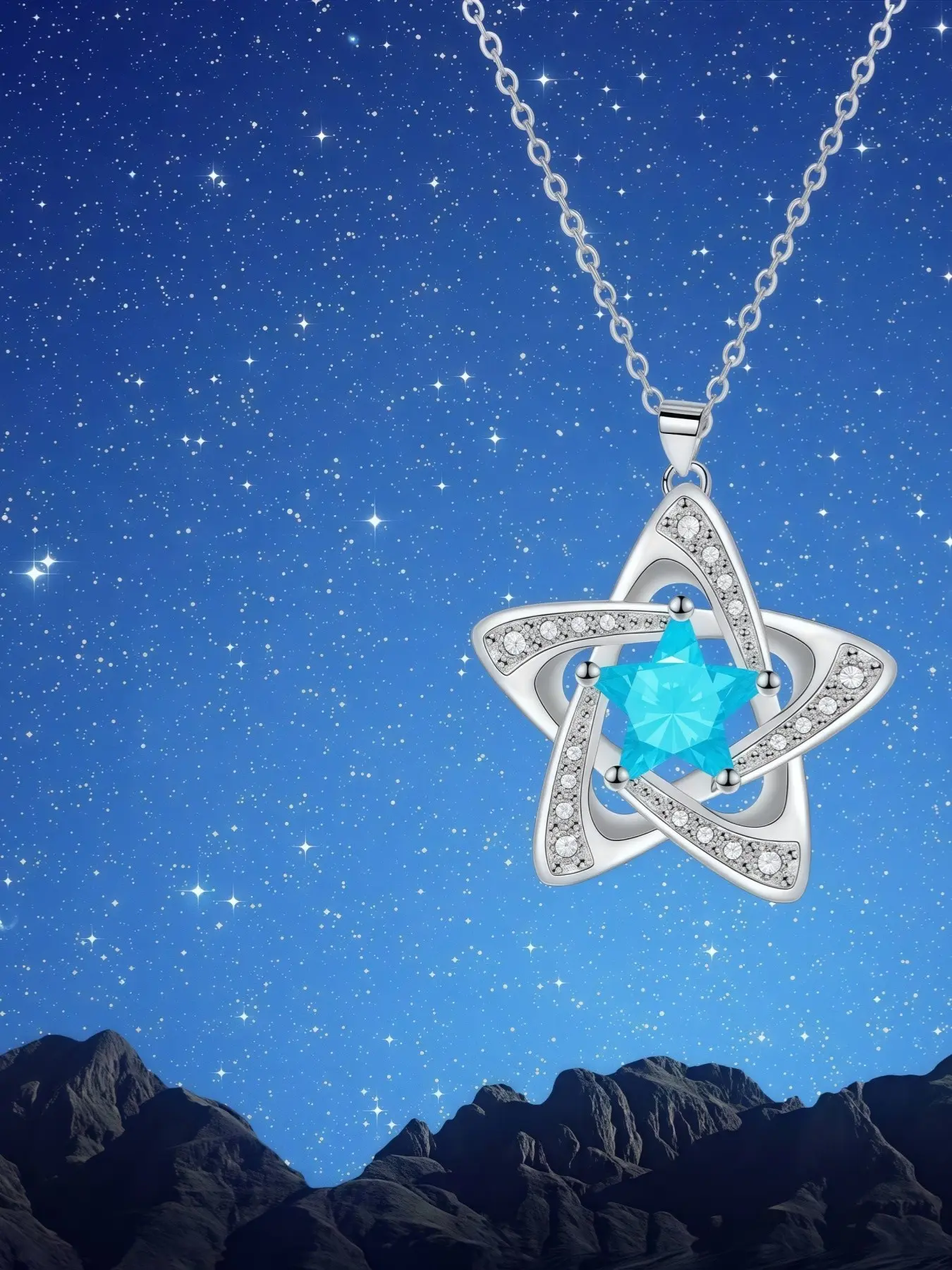 "Blue Diamond Stardust" — Elegant blue pentagram sapphire necklace with preserved rose & eco-friendly moss teddy bear gift box. A perfect mysterious gift for festivals, dates, birthdays for wives or daughters, and Valentine's Day.