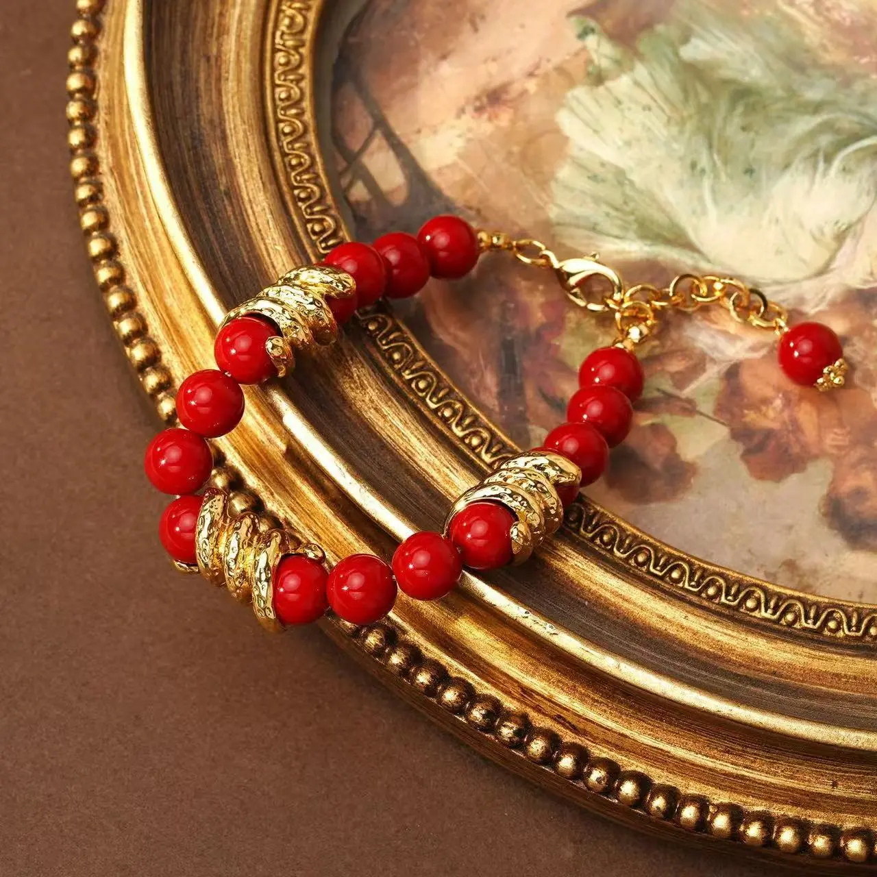 This is a new Chinese–style Snake Year red bead bracelet that perfectly combines the auspicious meanings of “red beads bring blessings” and “golden snake brings wealth,” making it an essential piece for outfits during the Lunar New Year and one’s zodiac year.