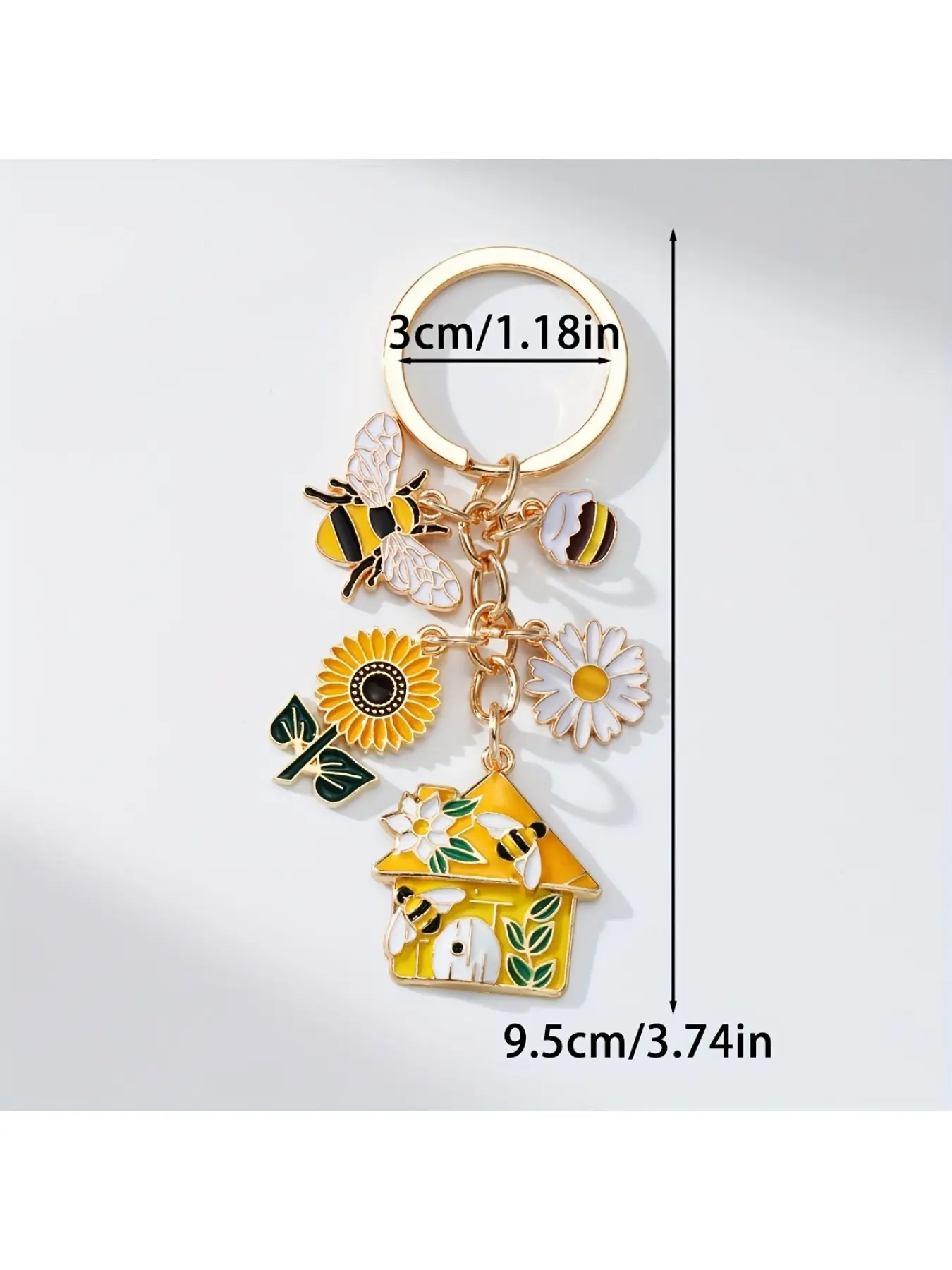 1pc Alloy Dripping Oil Bee Keychain - Featuring Bee, Daisy, Sunflower, Honey, And House Pendants, Part of The Insect Series Keychain, Suitable for Decorating Backpacks And Wallets, a Gift Option for Teacher'S Day And Valentine'S Day