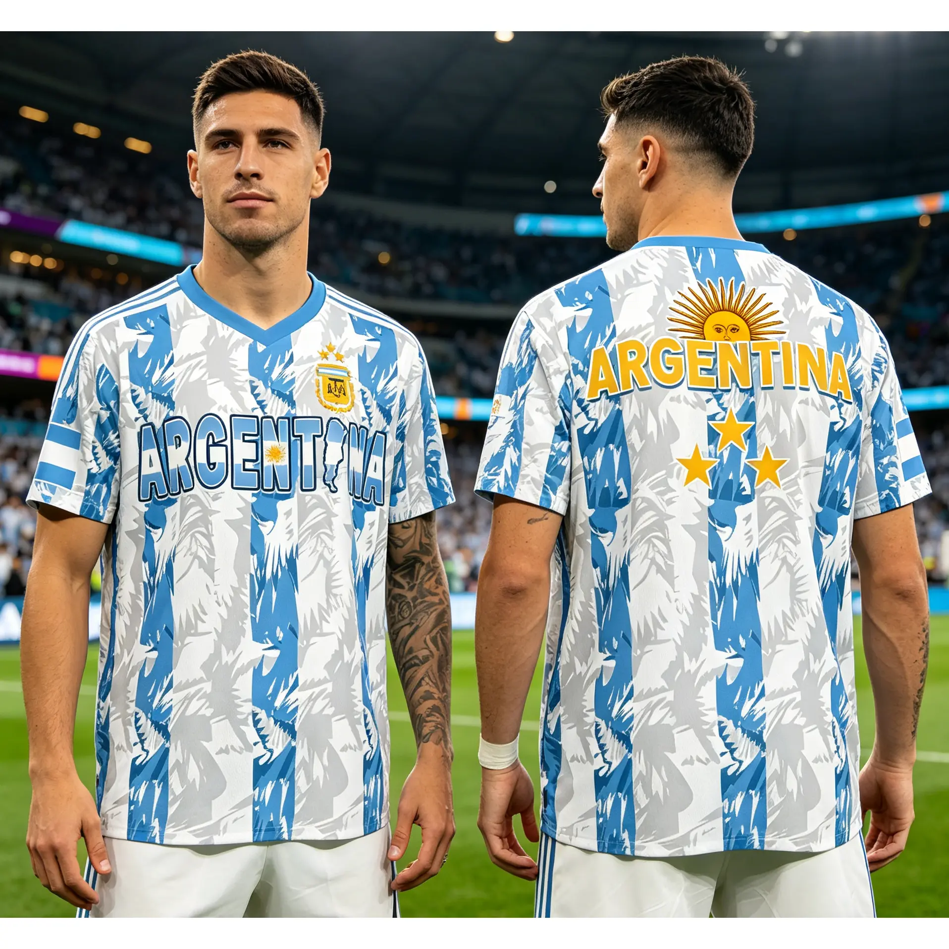 Men’s 2026 World Cup Argentina soccer jersey. Iconic blue & white stripes, lightweight breathable fabric. Comfortable for fans & players. Perfect match-day wear & gift for soccer lovers.
