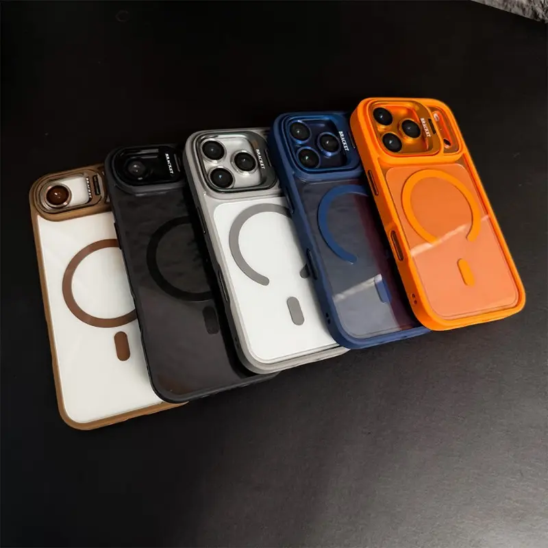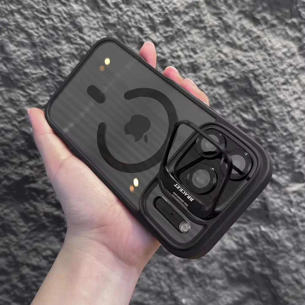 All-in-one protective case with magnetic charging, stand & lens protection.