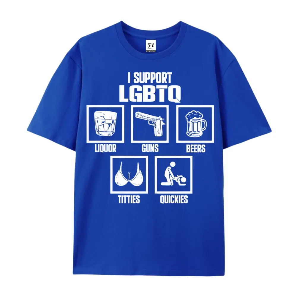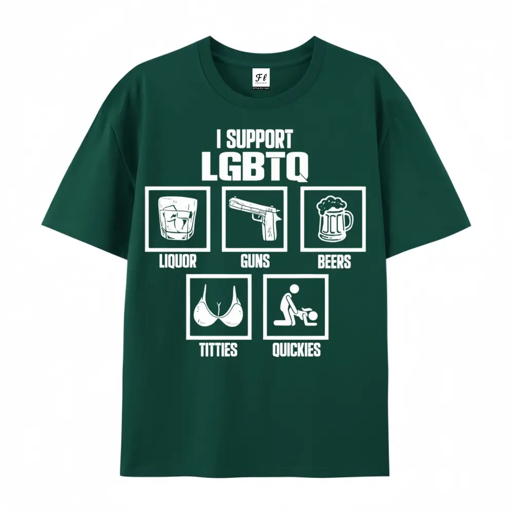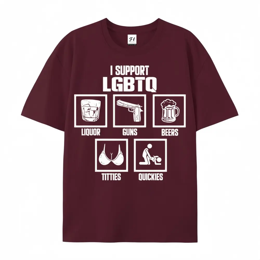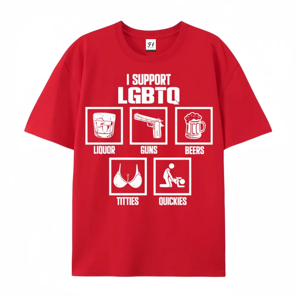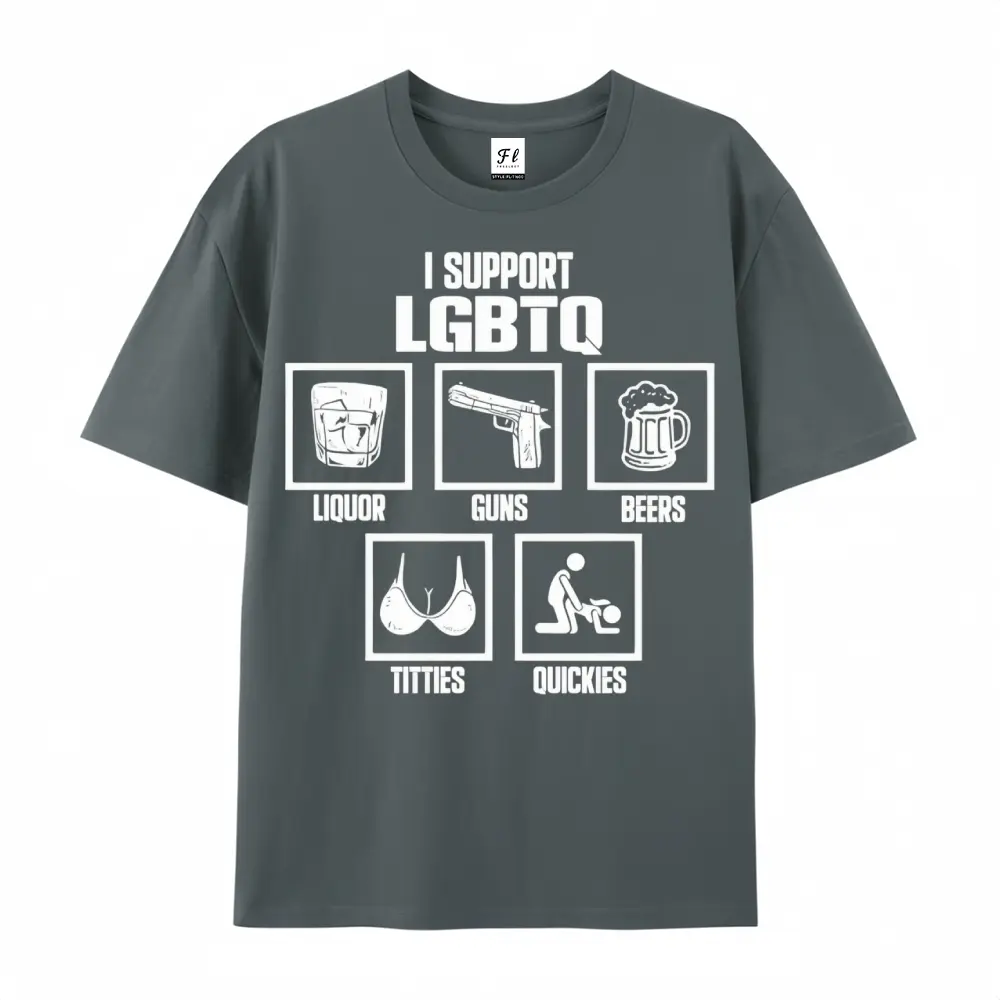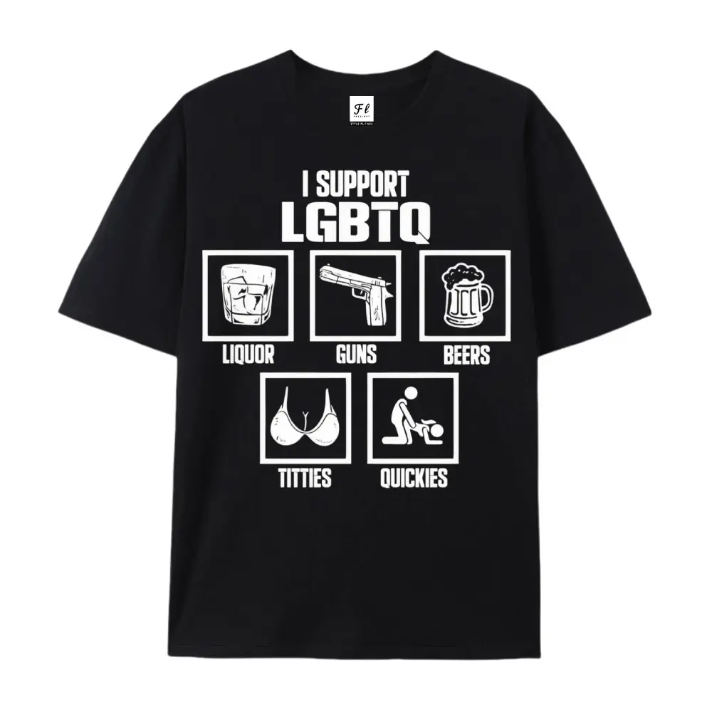 I Support LGBTQ Liquor Guns Beers T-Shirt | Funny Sarcastic Parody Graphic Tees for Men & Women