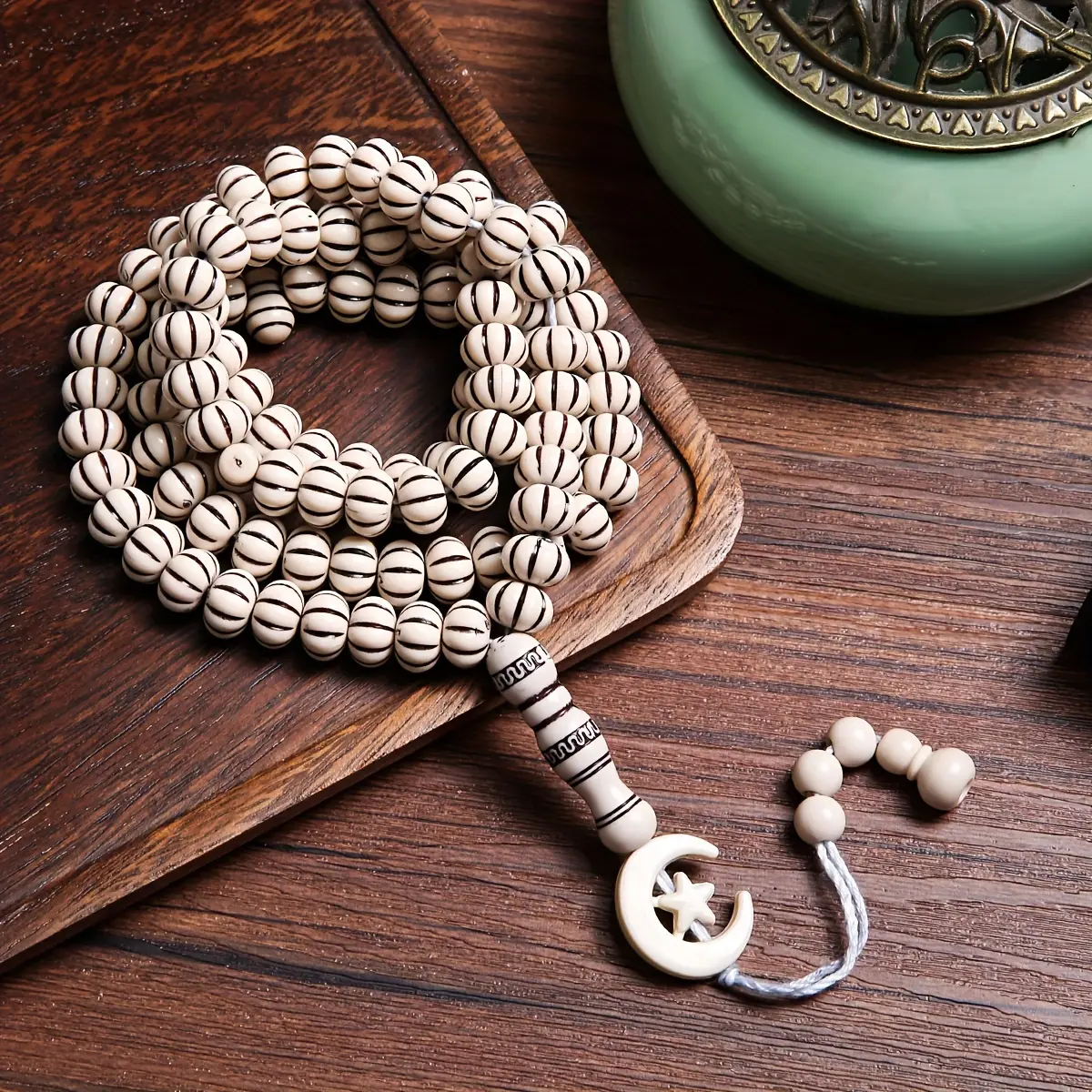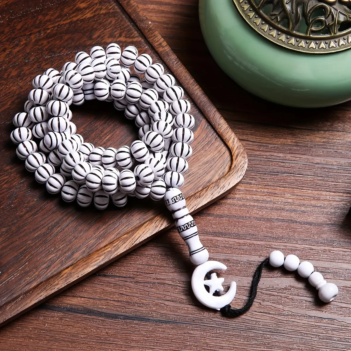 10mm Patterned Rice White 45 Beads Classic Rosary Elegant Round Beads Bracelet for Women Muslim Tasbih Casual Handheld Bracelet