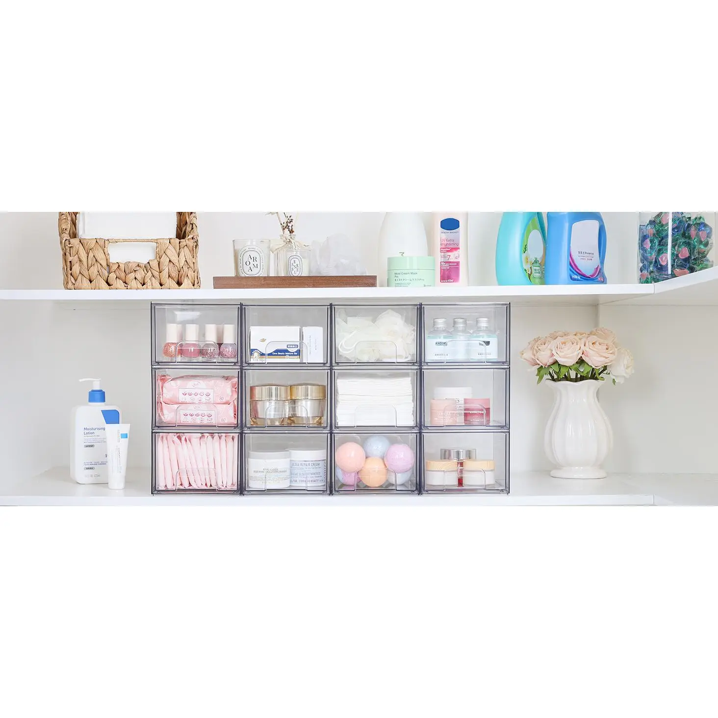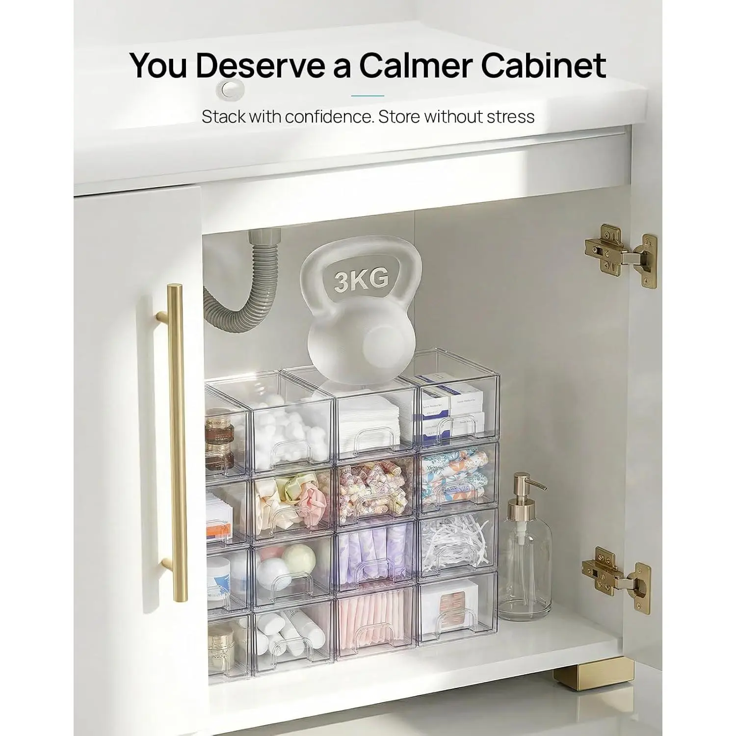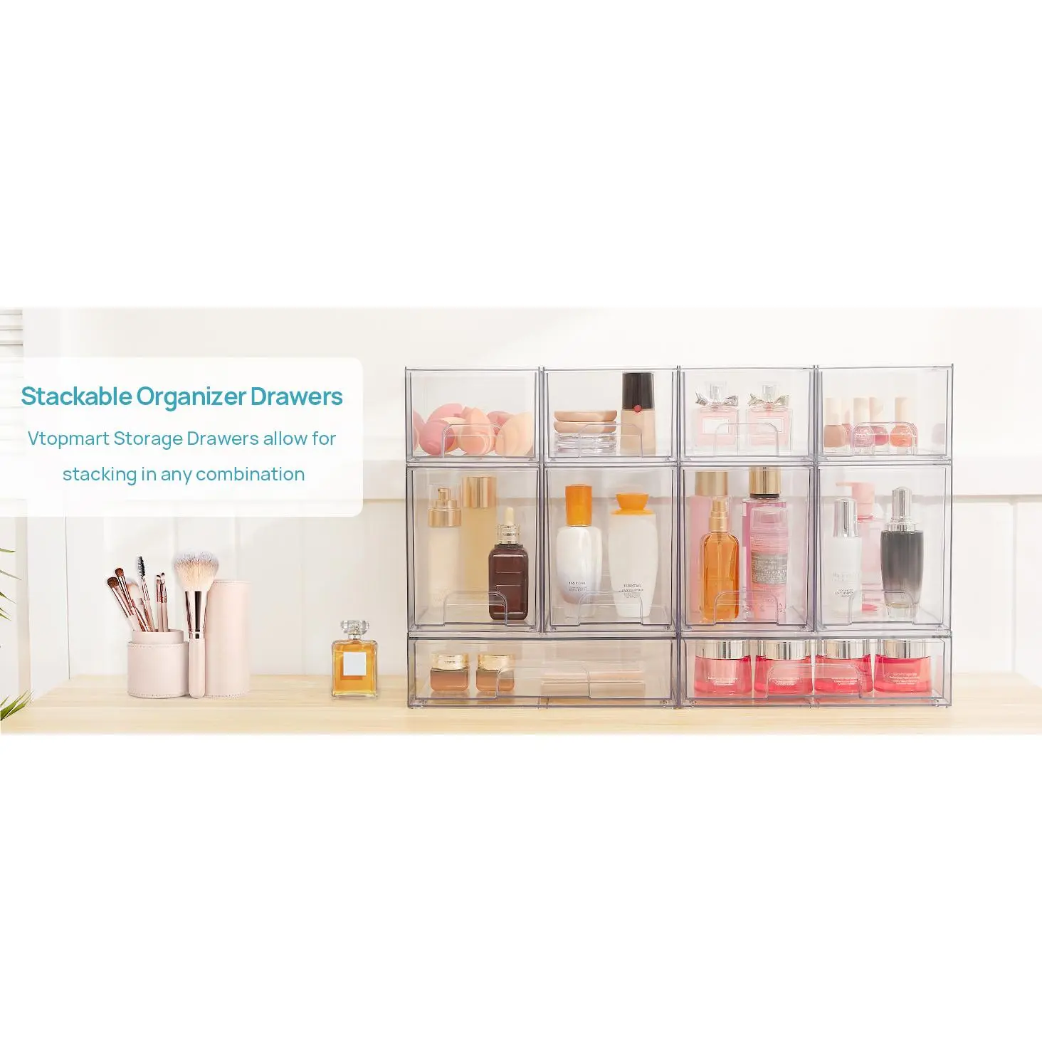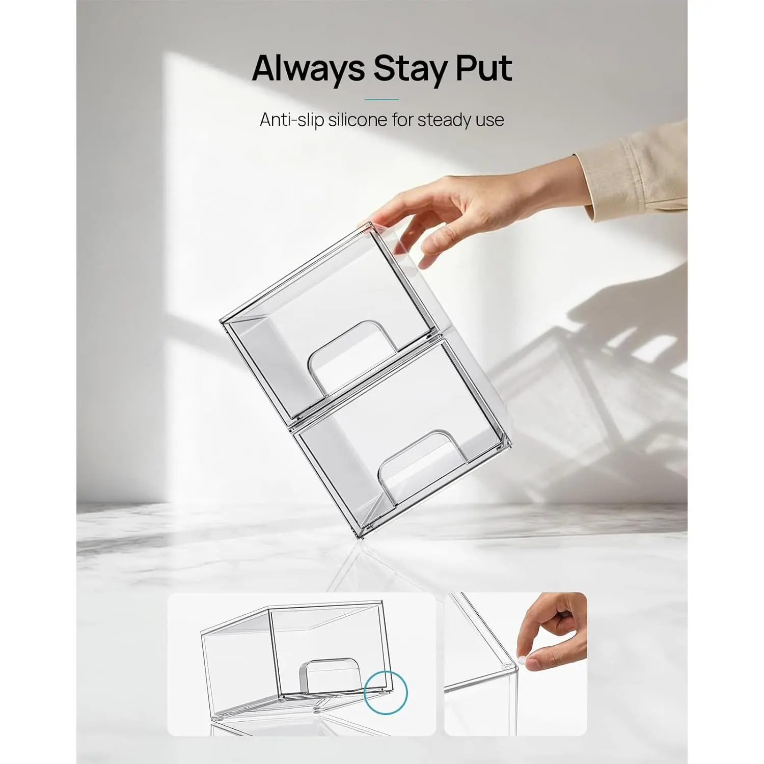 4 Pack Small Clear Stackable Storage Drawers,Acrylic Bathroom Makeup Organizer,Plastic Storage Bins For Vanity, Undersink, Kitchen Cabinets, Pantry, Home Organization