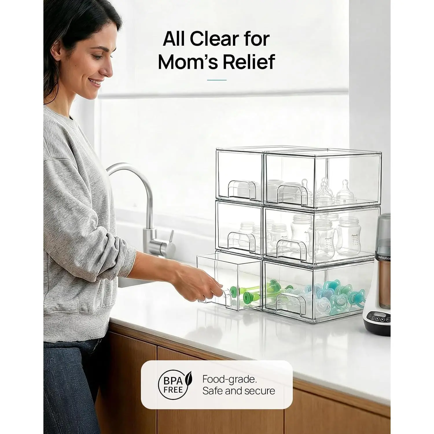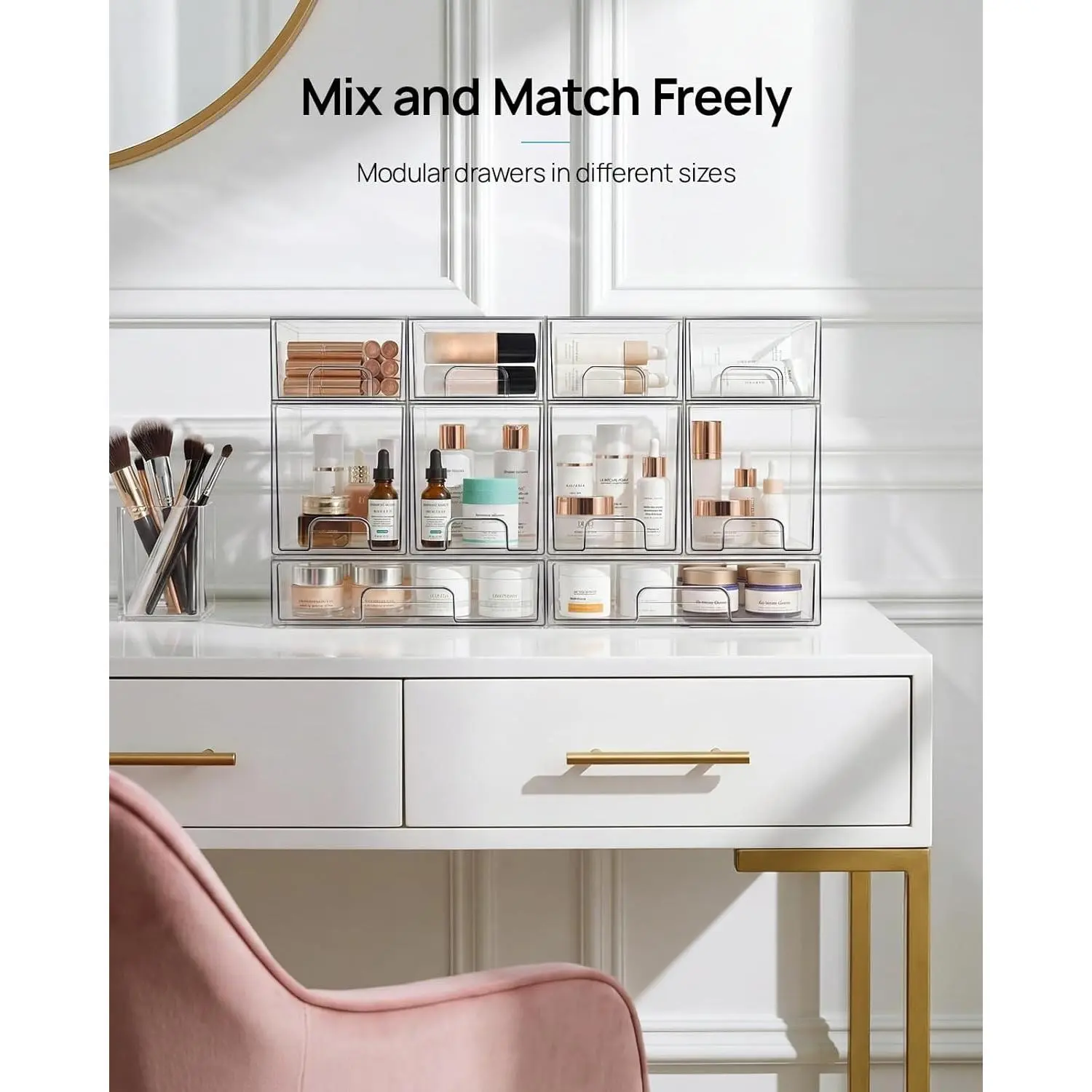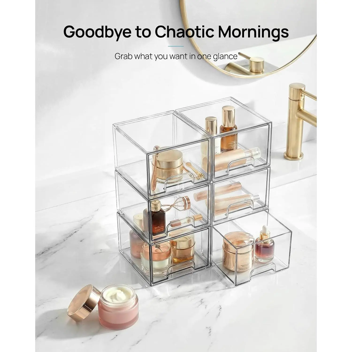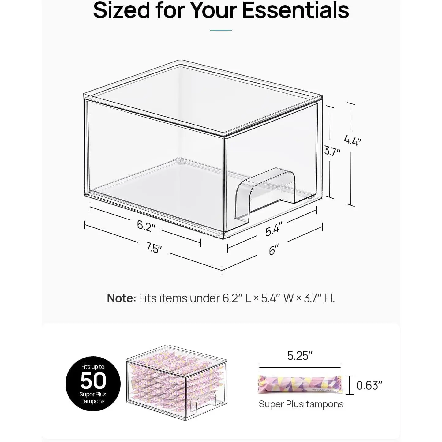 4 Pack Small Clear Stackable Storage Drawers,Acrylic Bathroom Makeup Organizer,Plastic Storage Bins For Vanity, Undersink, Kitchen Cabinets, Pantry, Home Organization