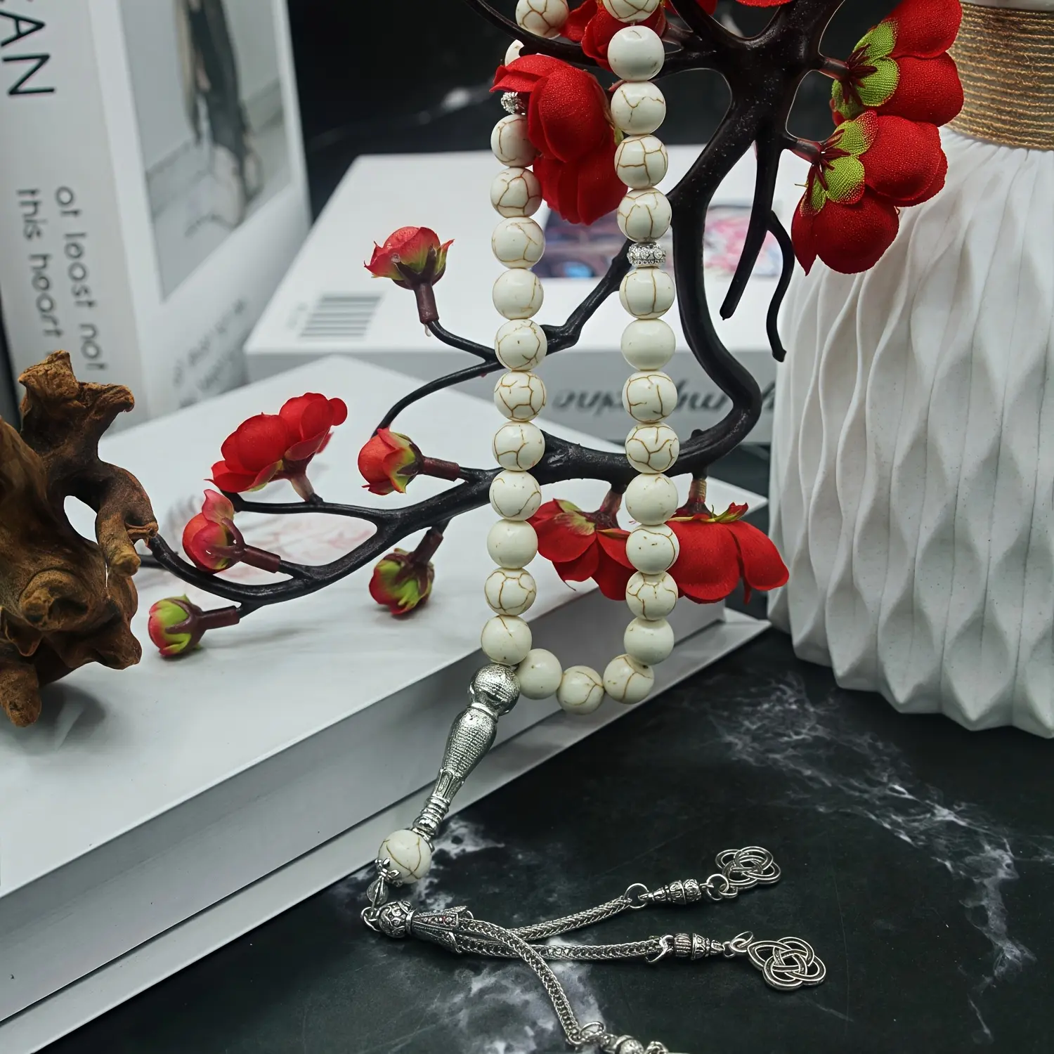 10mm Patterned Rice White 45 Beads Classic Rosary Elegant Round Beads Bracelet for Women Muslim Tasbih Casual Handheld Bracelet