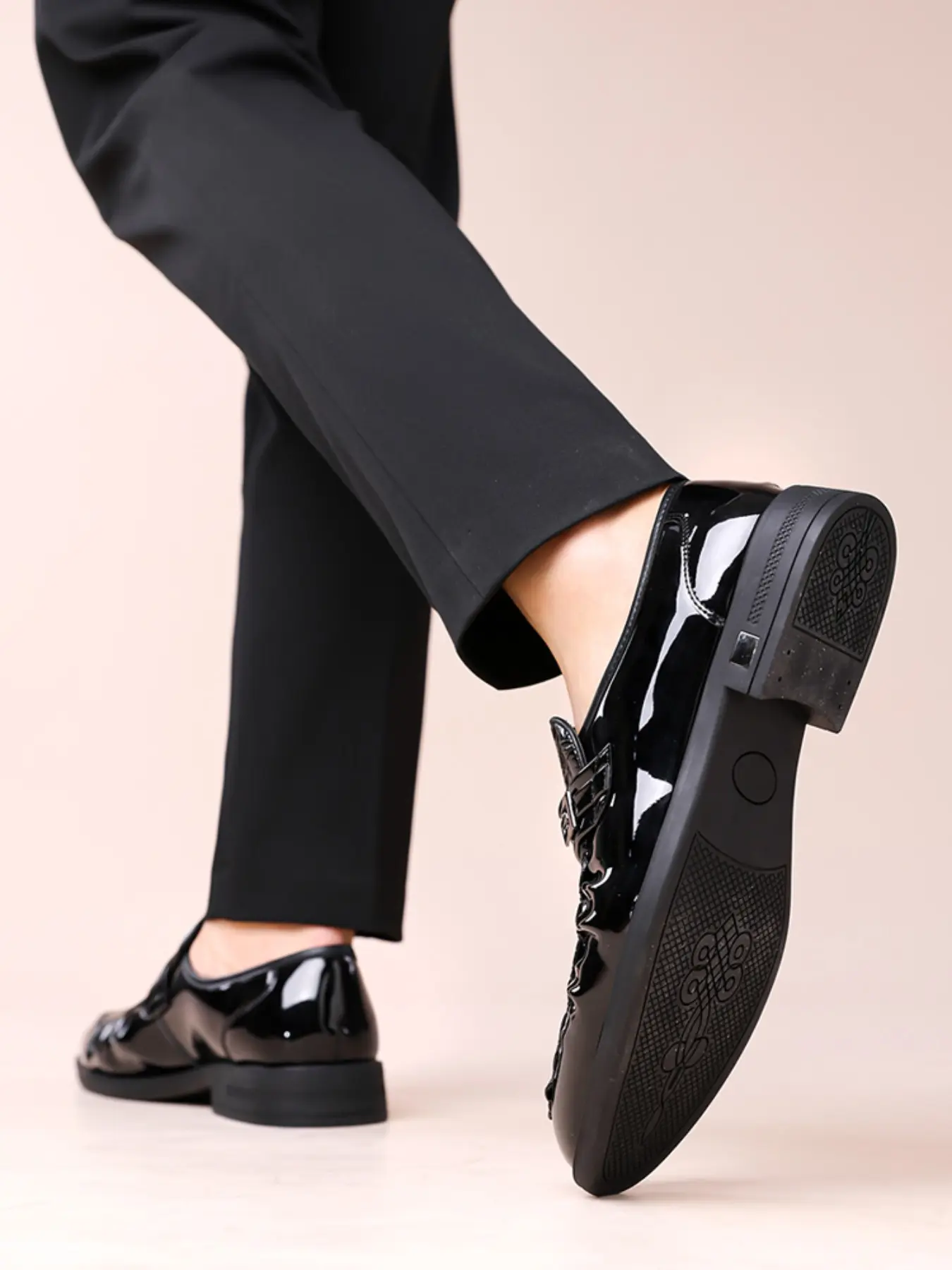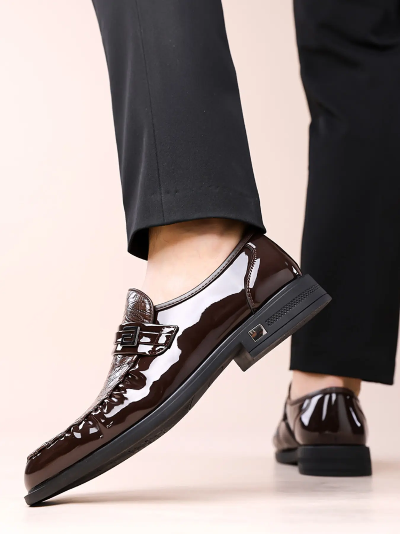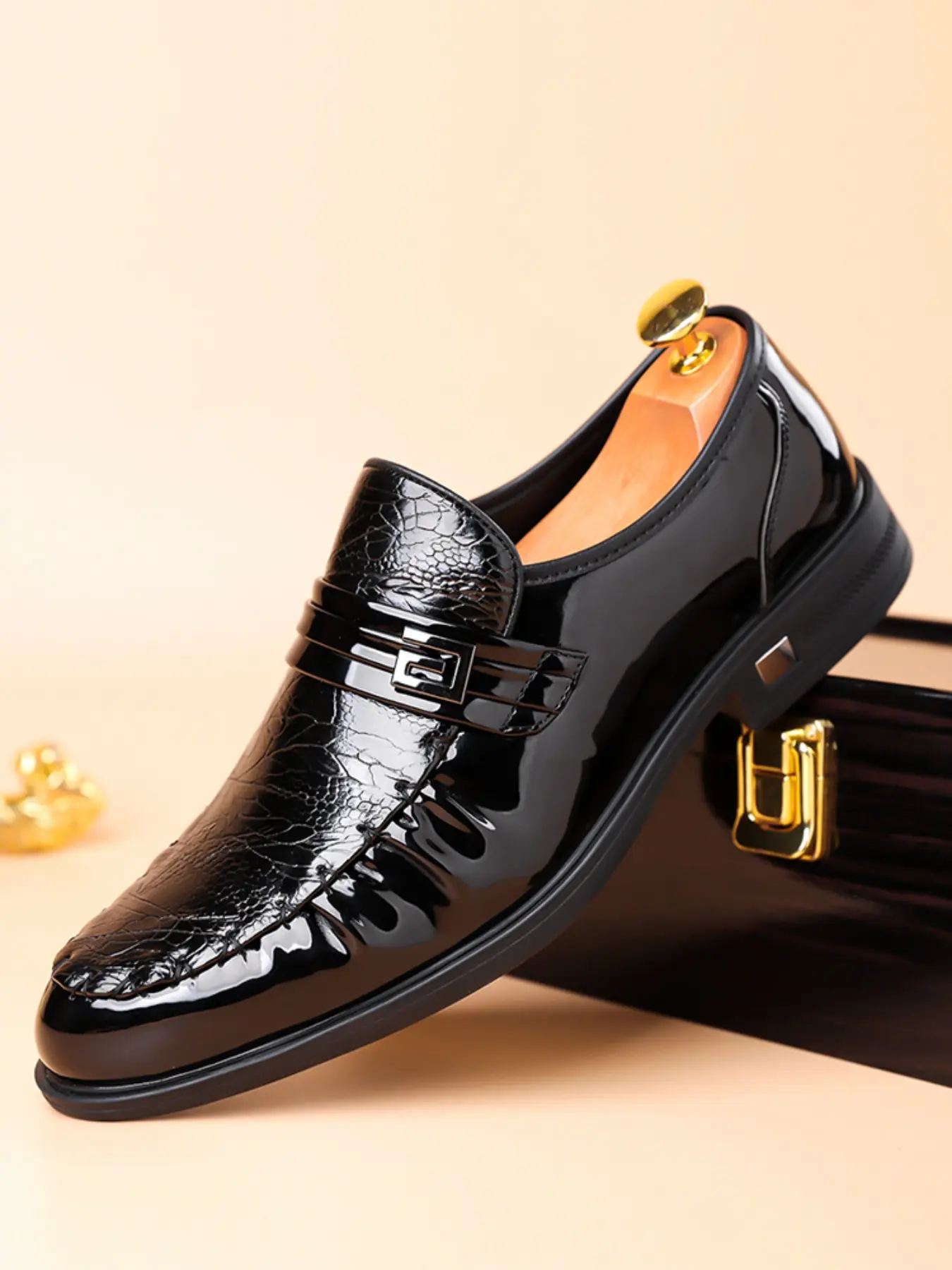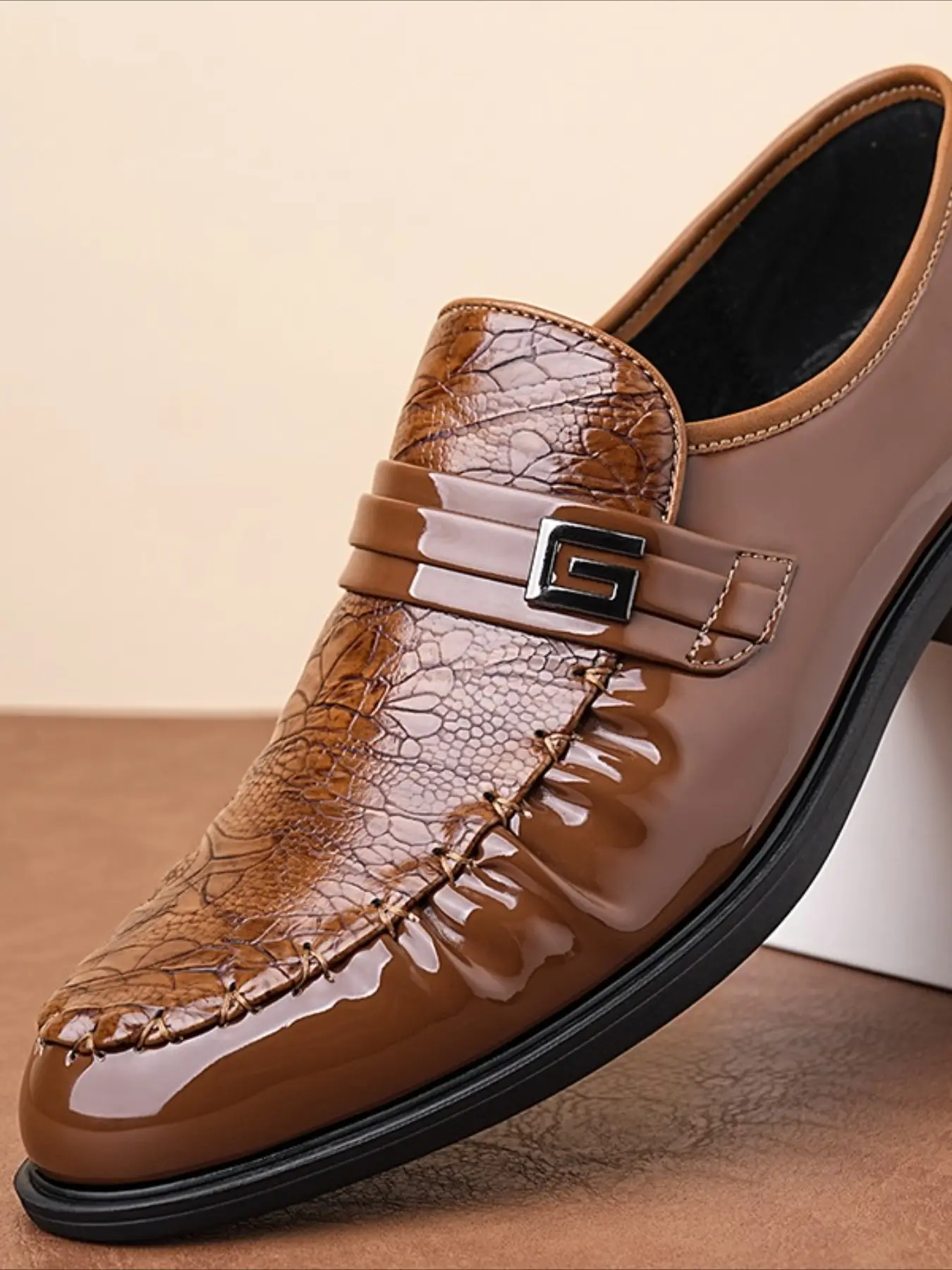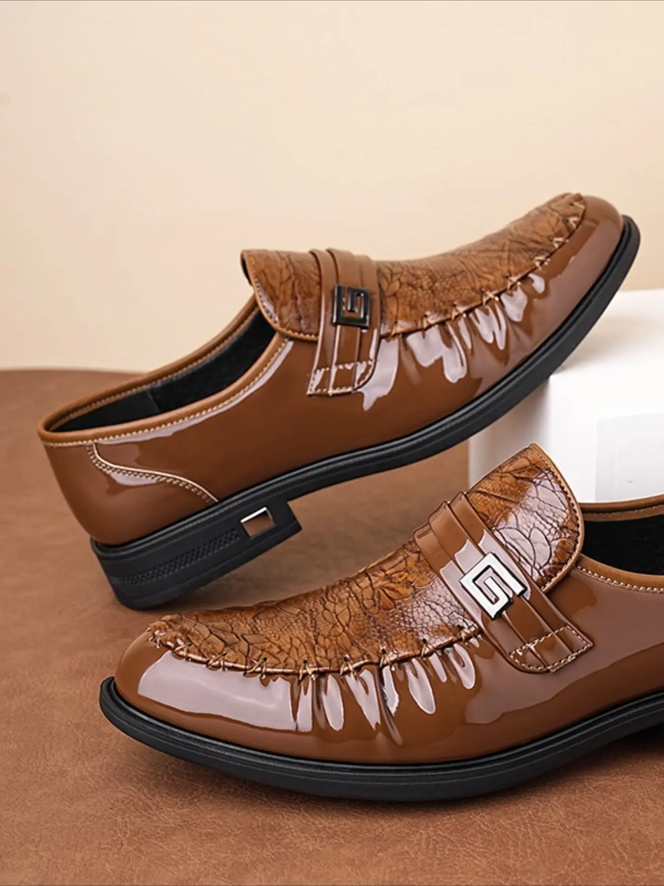 Men Loafers with PU Embossed Pattern Fashionable Classic Business Dress Shoes