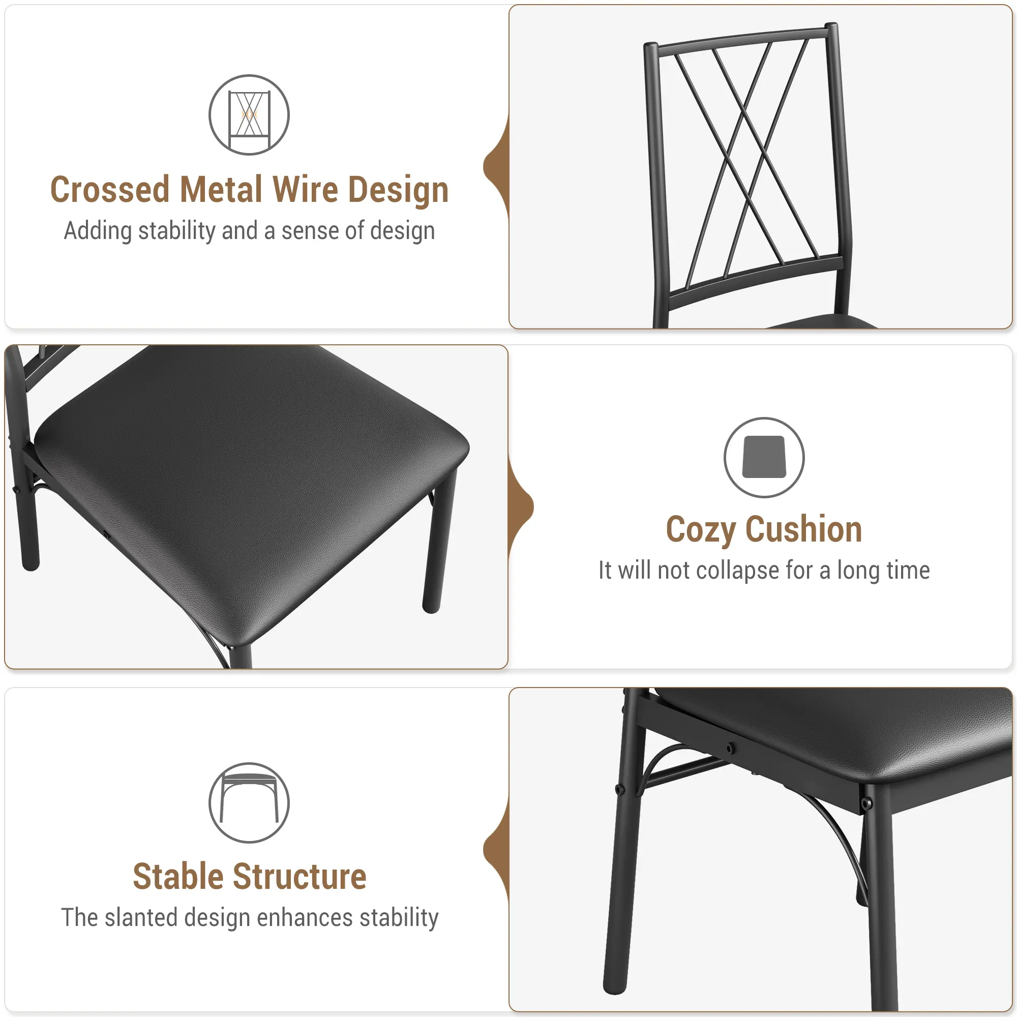 ·Comfort & Ergonomics: Each chair is ergonomically designed with an angled backrest and features soft, fabric-upholstered seats, ensuring comfortable seating for extended dining or work sessions. The set is ideal for seating 2-4 people comfortably.