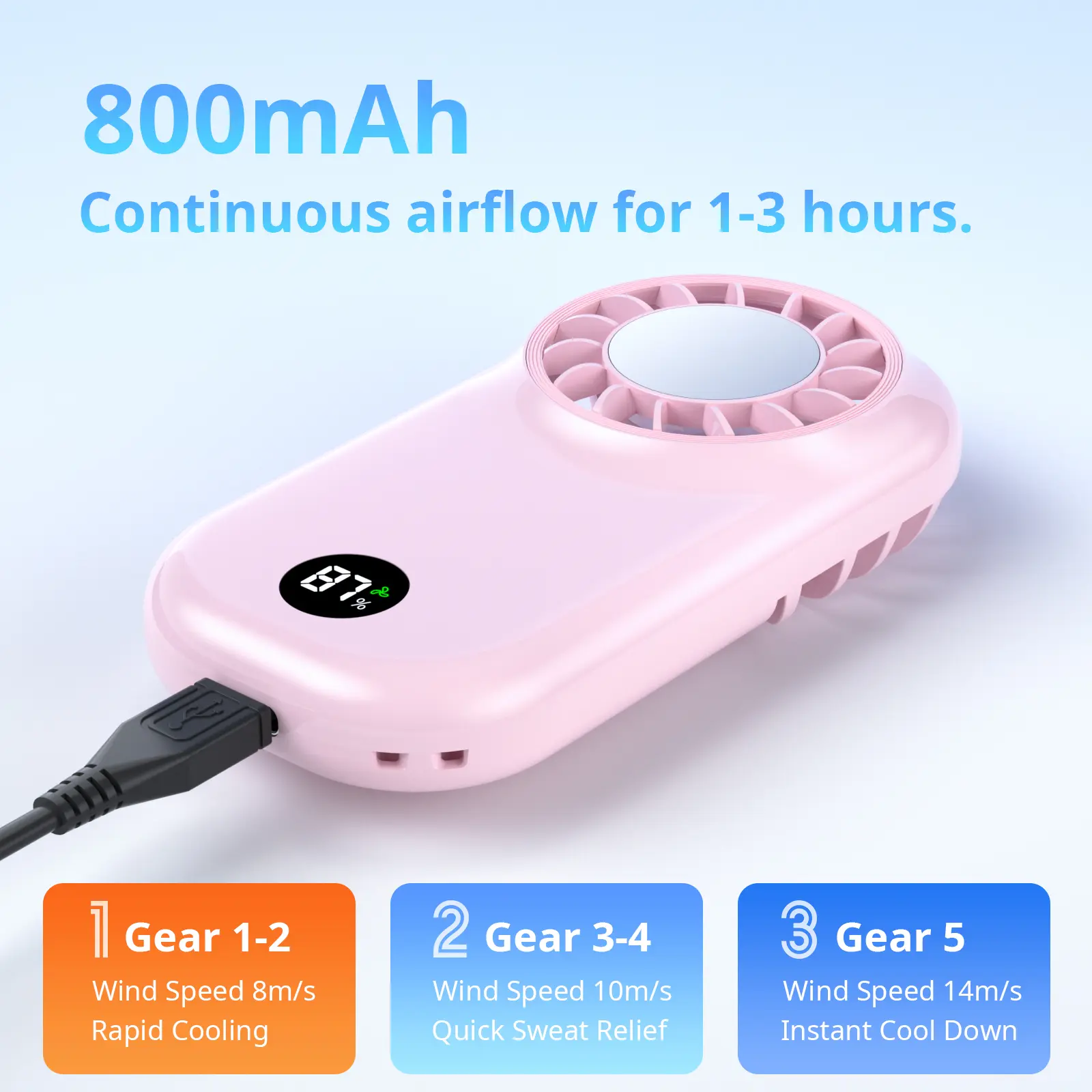 5-Speed Powerful Airflow: From a gentle breeze to an instant cool-down. With wind speeds up to 14m/s, it’s small but mighty!