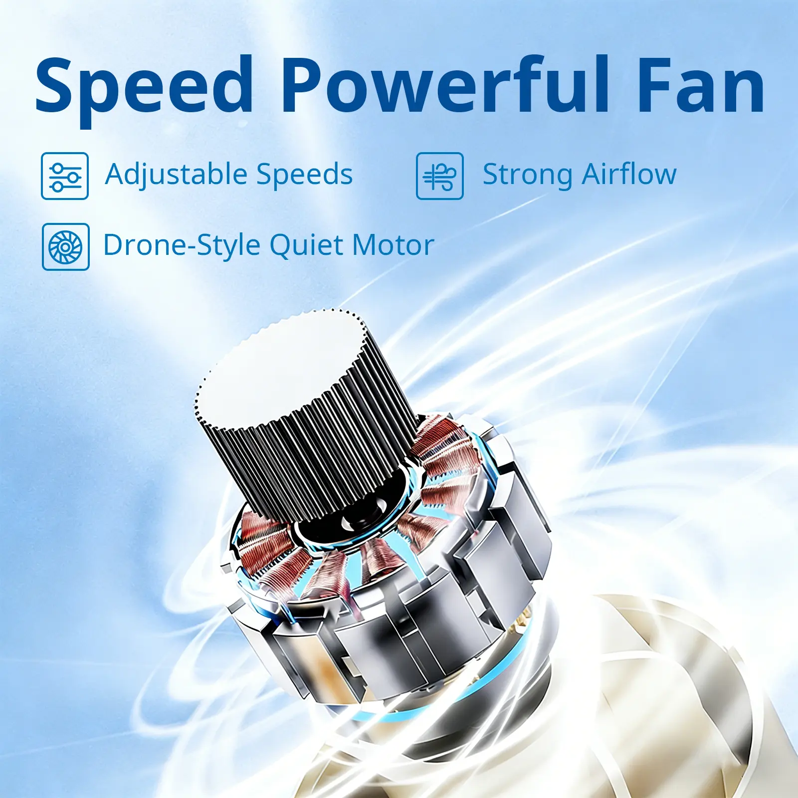 Drone-Style Quiet Motor: Enjoy a strong breeze without the noise. Perfect for office, library, or quiet commutes.