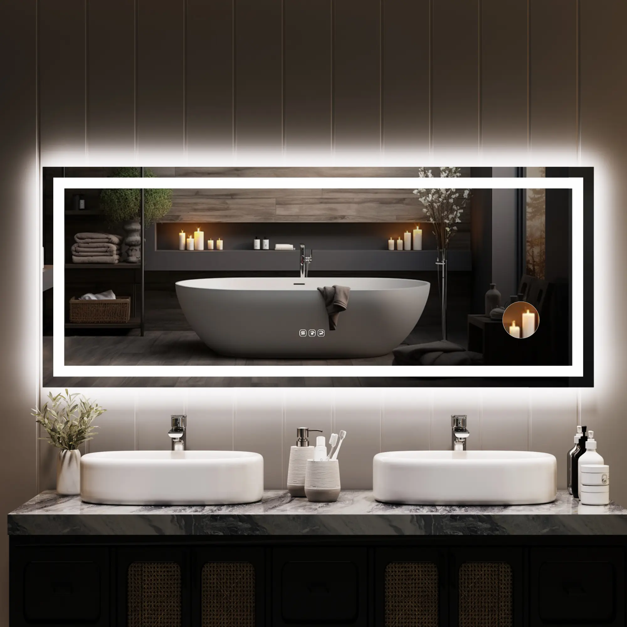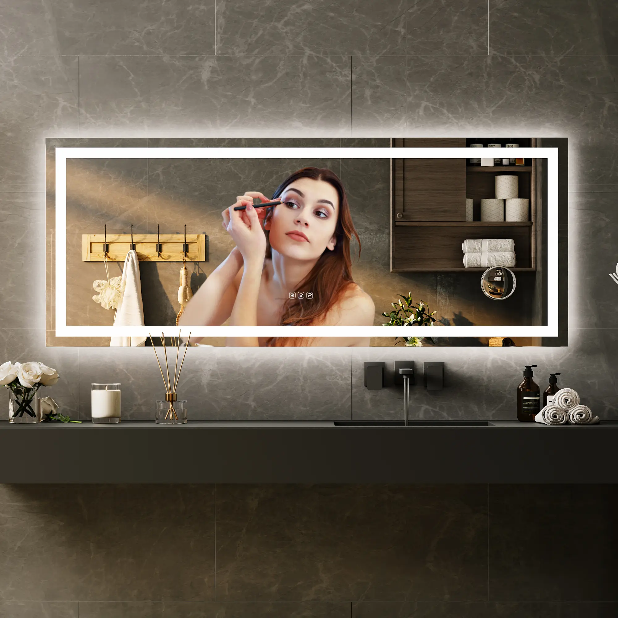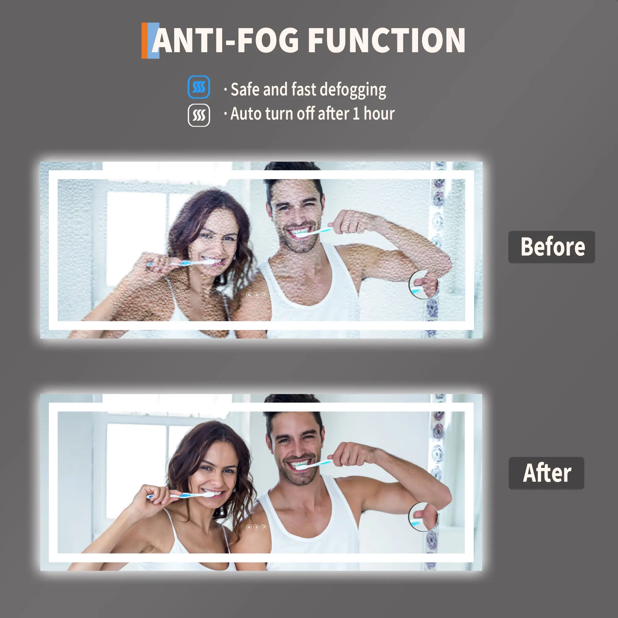 ·🔥【Anti-Fog Clarity & Auto-Off Safety】Never wipe fog again! Activate the anti-fog function before or after showers to maintain a consistently clear mirror surface. Designed for convenience and safety, the defogger automatically shuts off after one hour—giving you a fog-free view while saving energy and ensuring peace of mind.