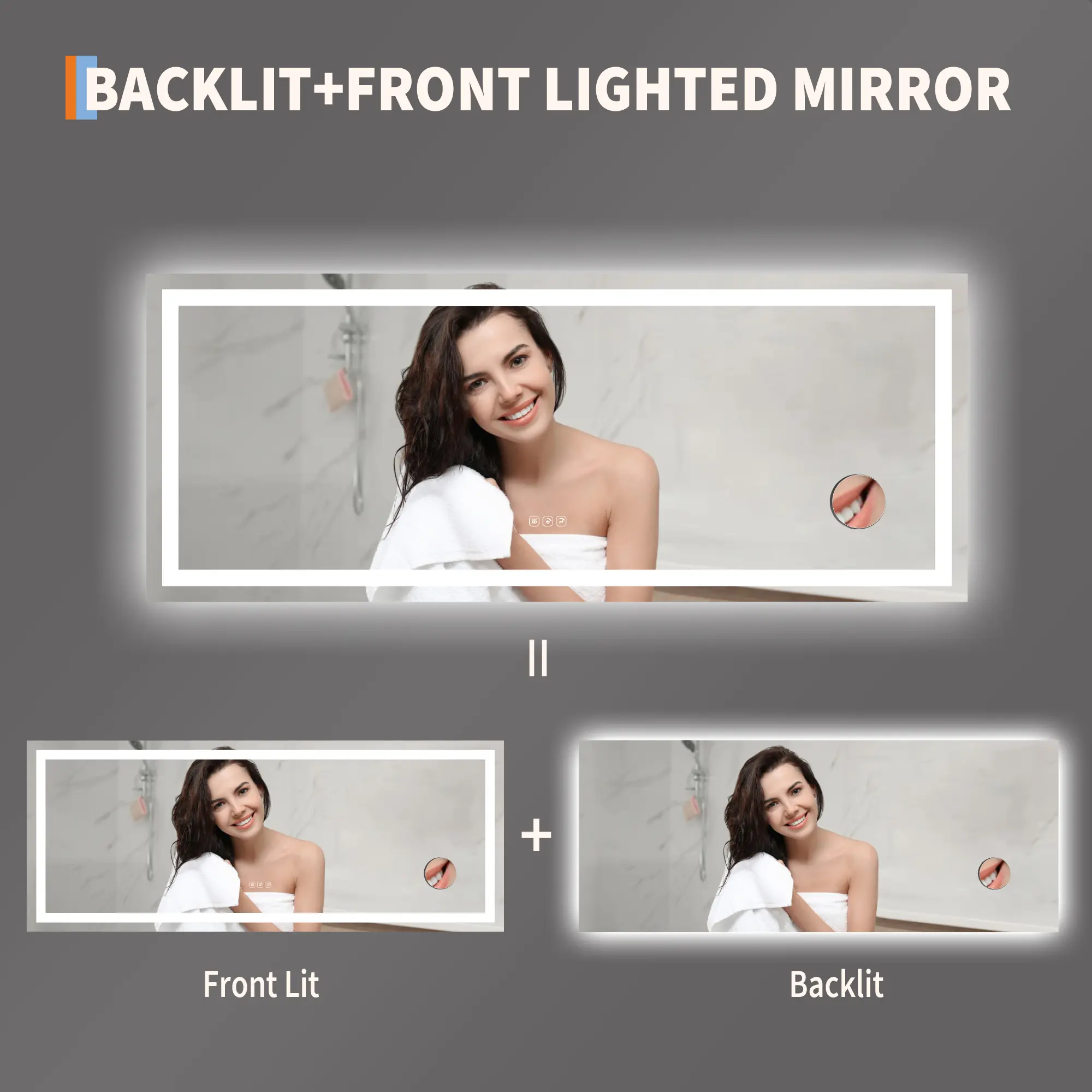 ·🔆【Dual-Sided Lighting for Ultimate Clarity】LED Mirror for Bathroom is designed with a combination of backlit + front-lit LED design. This double-lighting system provides 3X brighter output than standard vanity mirrors, ensuring perfect visibility for makeup application, shaving, and skincare. No more dark spots or uneven shadows—just crystal-clear reflection for every grooming detail.
