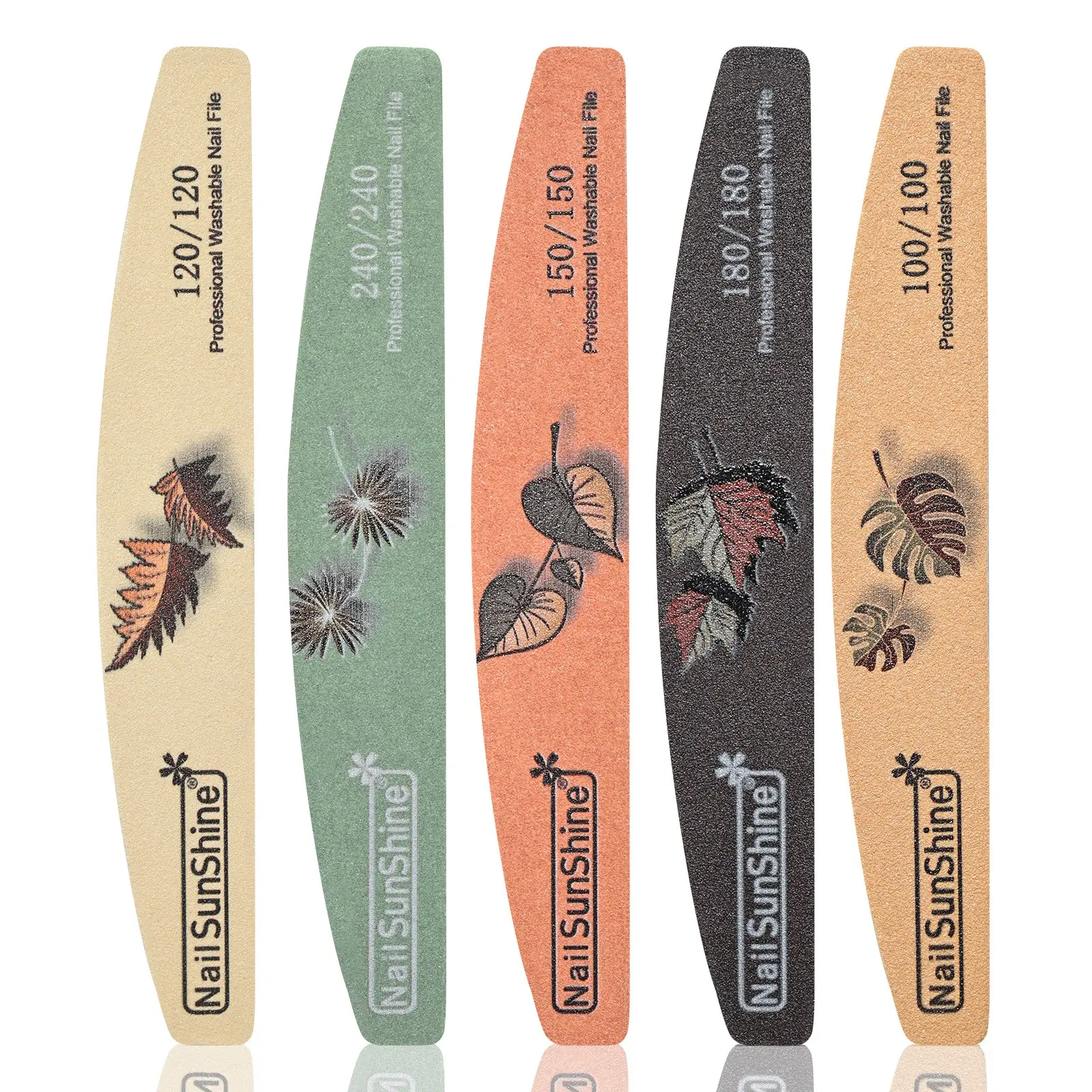 5-piece Nail File Set - Professional Half-Moon Nail File Double-Sided Sanding Board, Washable Nail Files and Buffing Block, Smooth and Shape Nails, Manicure and Pedicure Polishing Tool