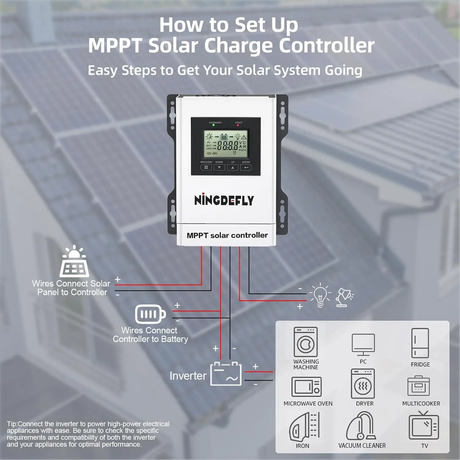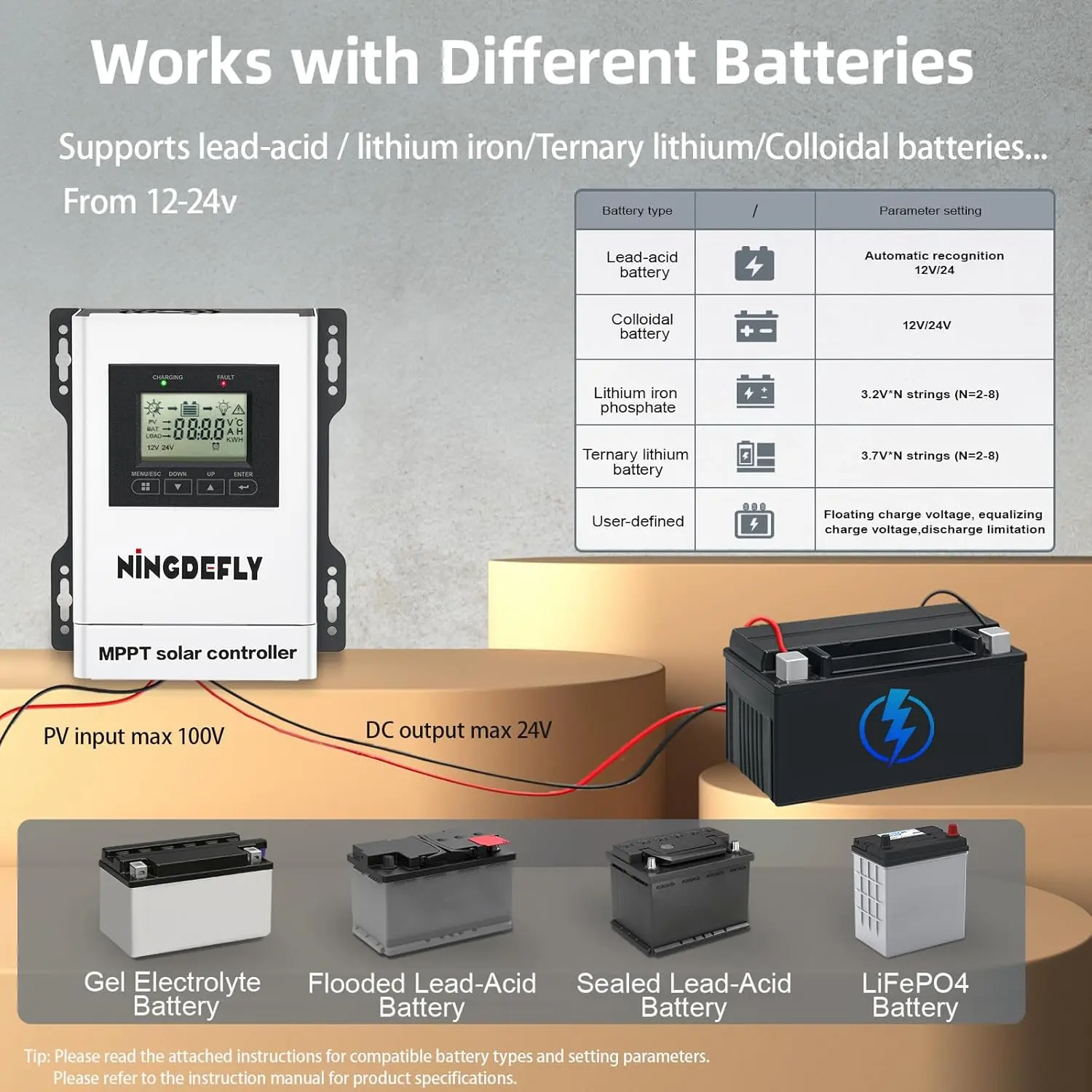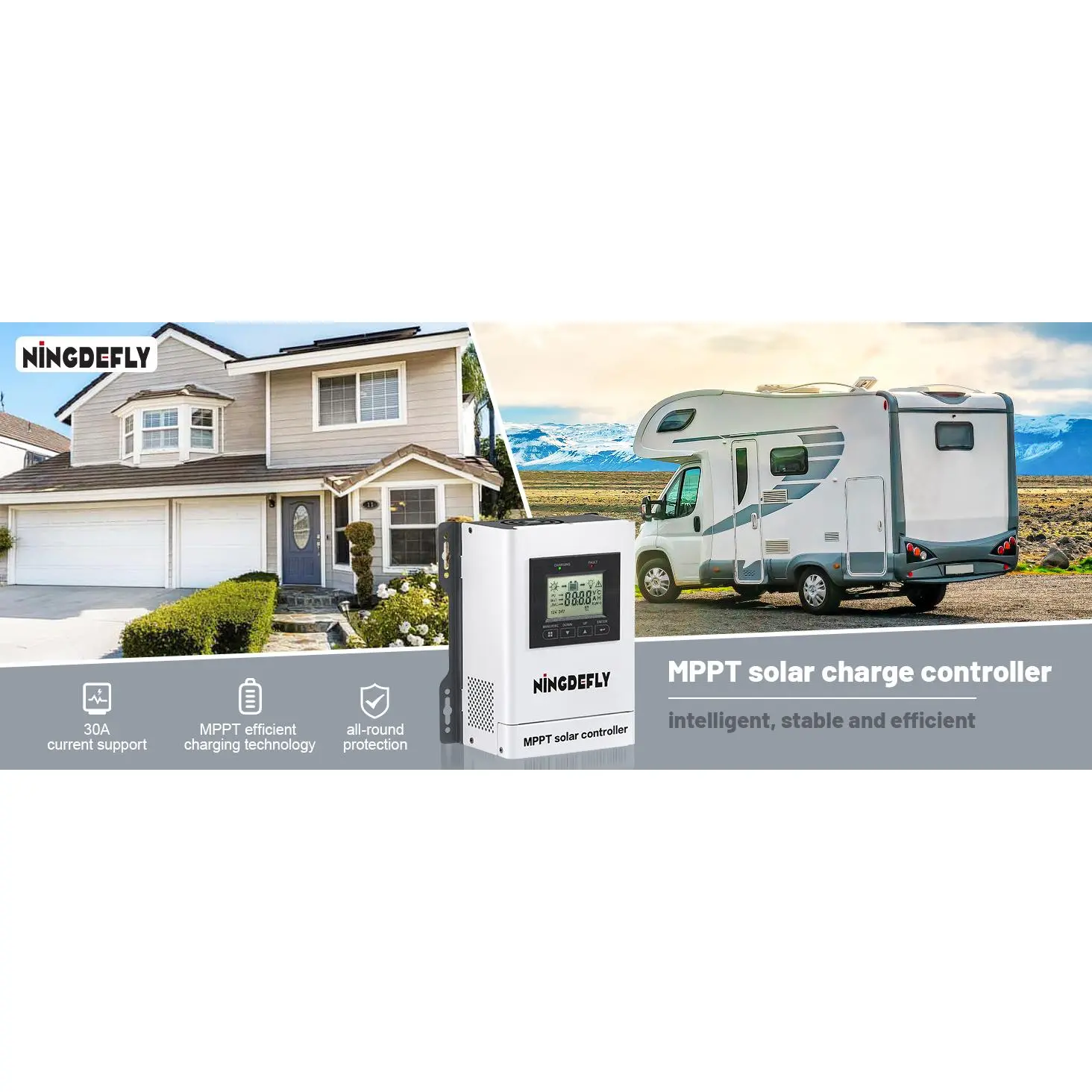 High efficiency: The MPPT solar charge controller (30A, 12/24V) enhances energy harvesting from solar panels by converting higher voltage to a lower voltage suitable for your system.It delivers optimized power output, ensuring efficient energy utilization for a wide range of solar applications.Fit different batteries :This 30A 24V MPPT solar charge controller automatically detects 12V 24V battery systems, working with LiFePO4, gel, sealed, flooded, and AGM batteries.Fit for off-grid homes, RVs, boats, or solar stations, this MPPT solar charger delivers tailored energy solutions.Real-time LCD display:Take charge with the built-in LCD display on this MPPT solar charge controller!It shows you real-time charging status, battery voltage, and system performance at a glance.Just easy monitoring and control for your solar setup.Whether you’re new to solar or a seasoned pro, this solar battery regulator keeps ease!Multifunctional protection:Loaded with advanced protections like overcharge, over-discharge, short circuit, reverse polarity, and over-temperature safeguards, this MPPT solar charge controller keeps solar system running smoothly.It’s built to handle any weather, ensuring batteries last longer.Getting reliable power With this MPPT solar charger.Speedy Setup:Kick off solar system with this MPPT solar charge controller-its clever design and straightforward instructions make installation.And it comes with a 2-year warranty and 24/7 technical support.