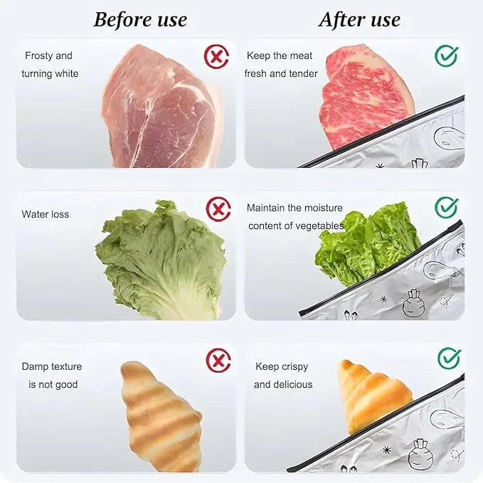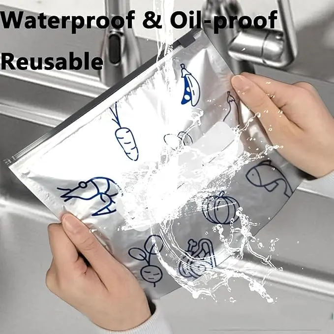 These foil freezer bags are perfect for storing vegetables, fruits, and meat. The large, medium, and small sizes cater to different storage needs. Keep your food fresh and organized with these sealable bags. No more waste with reusable options.