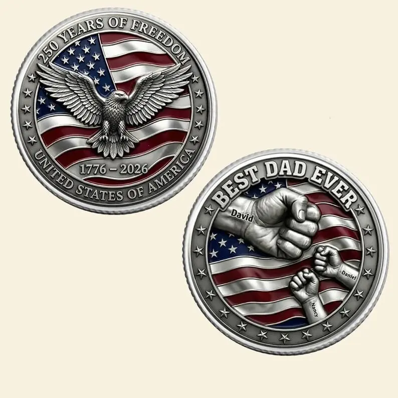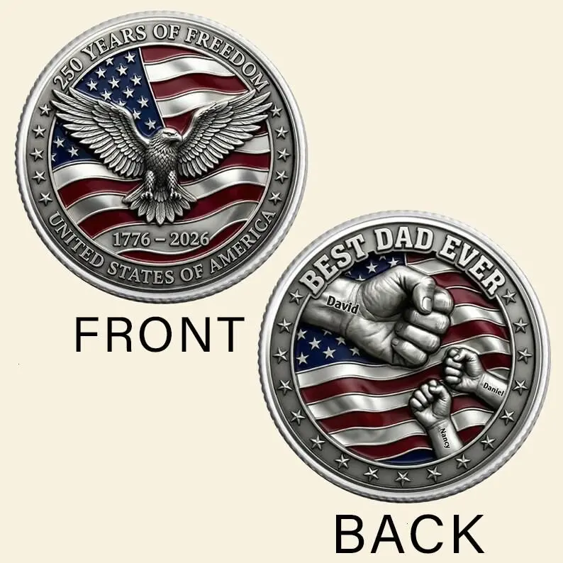 5. Custom Best Dad Ever Fist Bump American Flag Keepsake Coin,250th Of Freedom Keepsake Coin,1776-2026 Anniversary Gift, Father's Day Gift