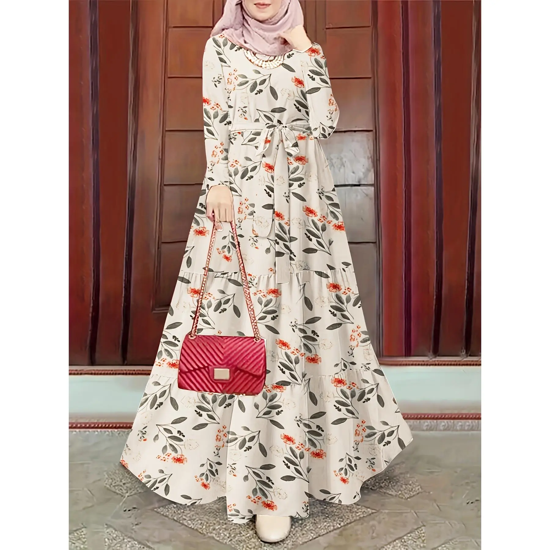 2023 New Muslim Middle Eastern Round Neck Printed Elegant Abaya