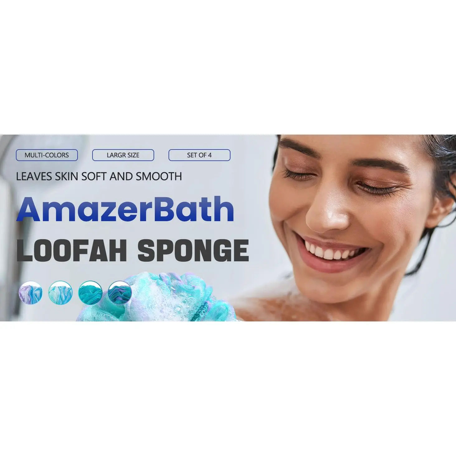 Loofah Sponge 75g/Piece, Exfoliating Bath Sponge Body Scrubber - Loofa Set of 4 Flower Color (Large, Green-Purple)