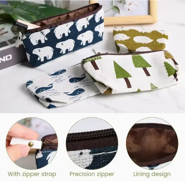 ·PACKAGE INCLUDED - 5 × Canvas Zipper Pencil Bag, 5 × Canvas Coin Purse, can meet your different needs.