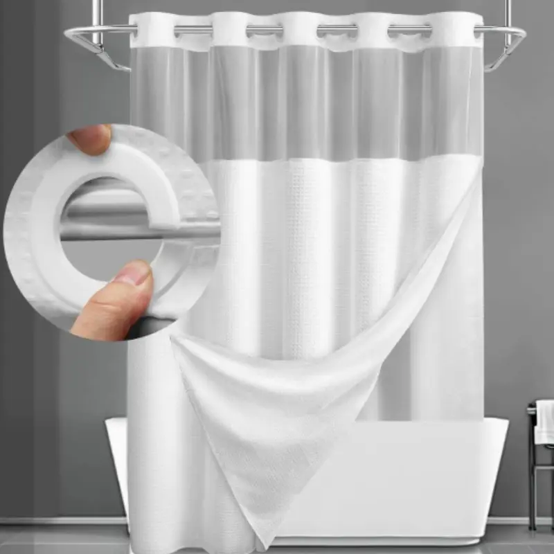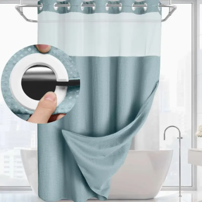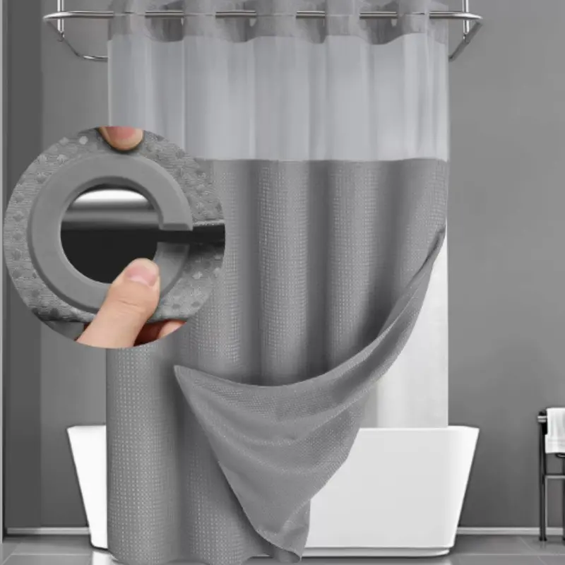 Double Layer Large Ring Waffle Bath Curtain, Waterproof Anti-Mold Shower Divider, Dry Wet Separation, Bathroom Privacy Screen