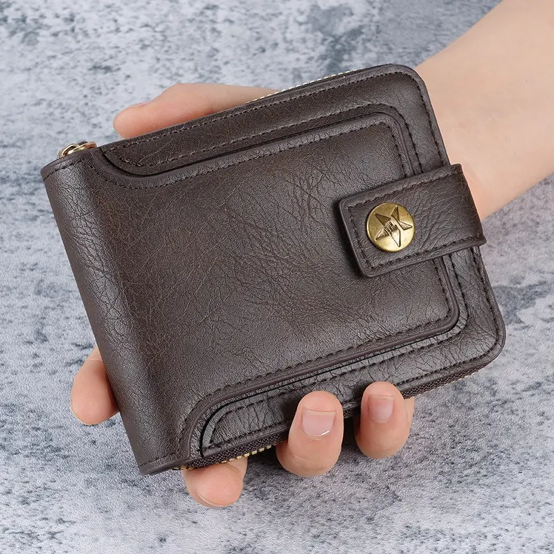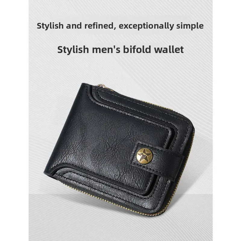 2026 New Retro Men's Short Wallet | Horizontal Zip Multi-functional Card Holder | Buckle Coin Purse