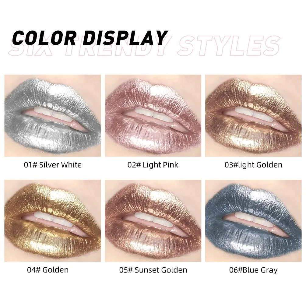 Liquid Lipstick Gloss, Dual-Use Eye Shadow and Lip Color, Long-Lasting, Easy Application, Shimmer Finish, Silver Gold Colors
