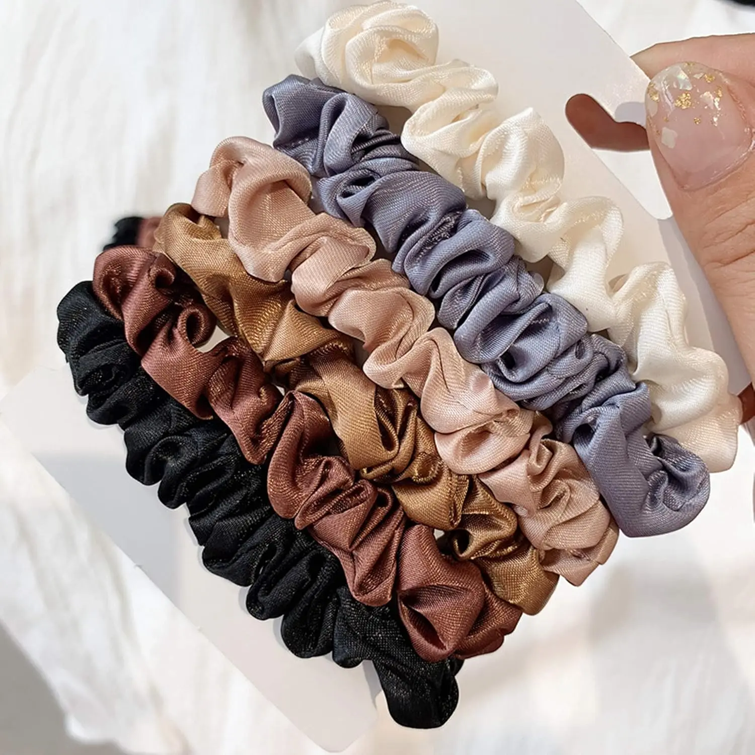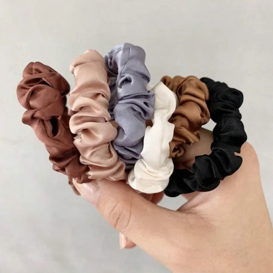 6pcs French Satin Hair Ties - Versatile, Durable, and Stylish Hair Accessories for Women, Perfect for Everyday Use, All-Season Knit Fabric Design in Solid Colors