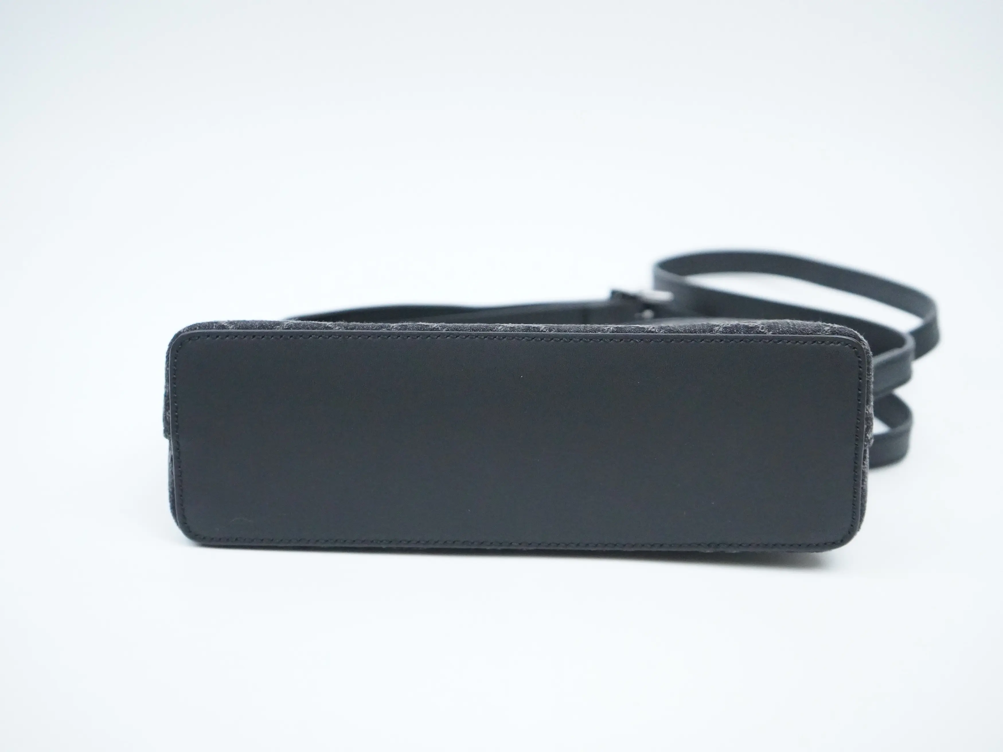 ·This dome-style crossbody bag is crafted of monogram denim in black and grey with black leather trim.