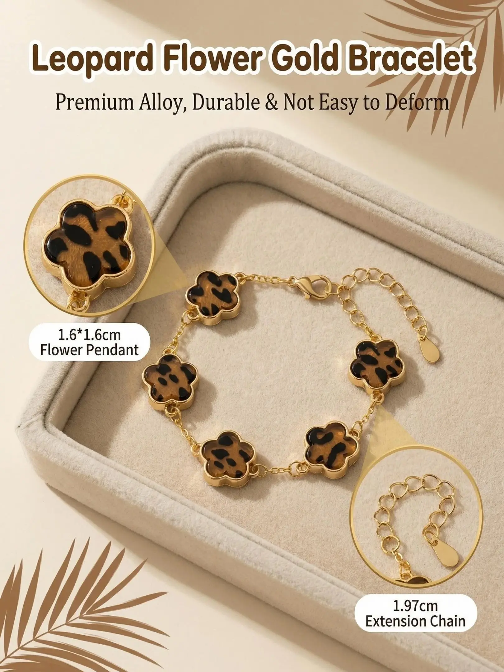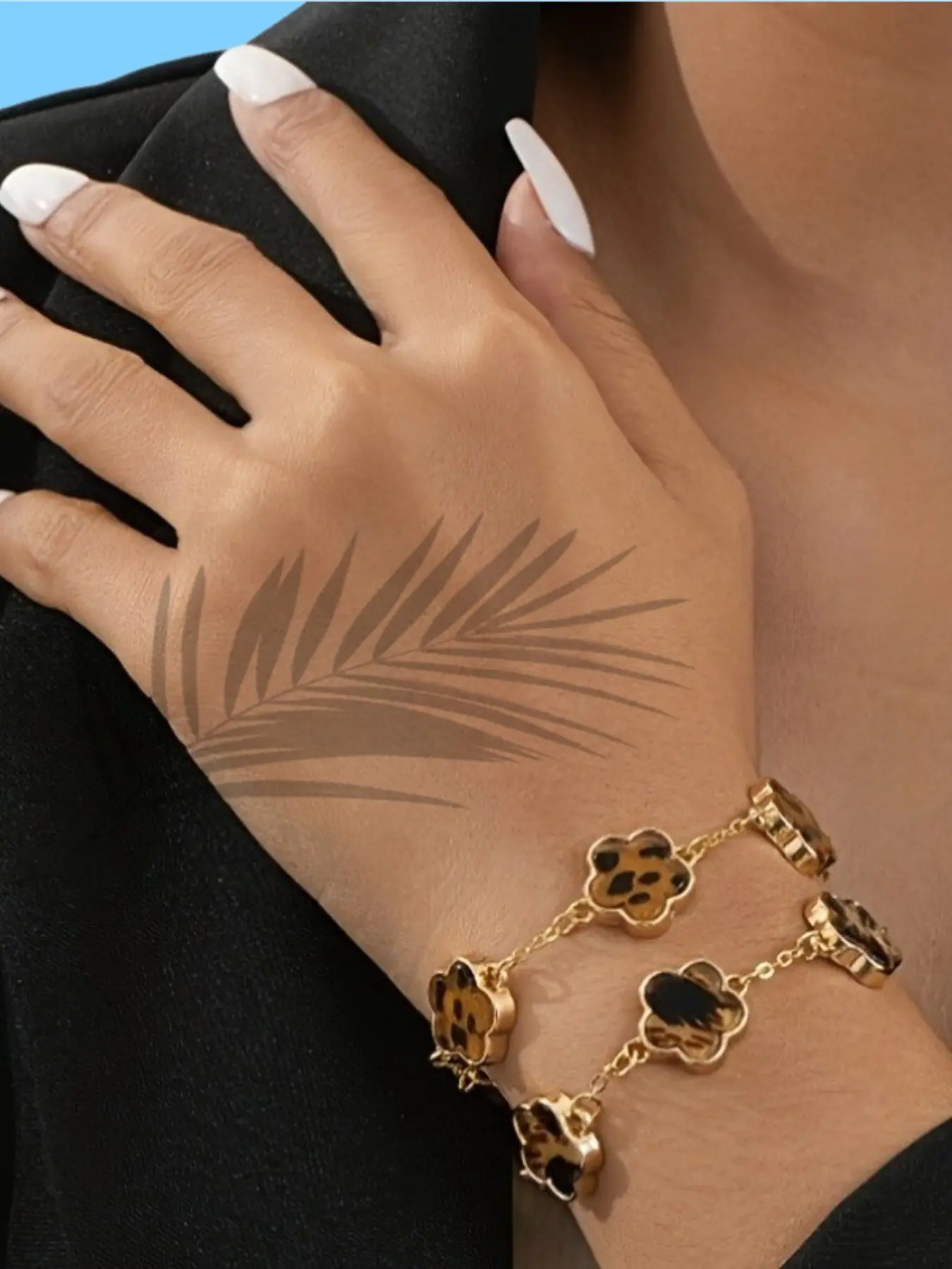 Boho Style Leopard Print and Clover Bracelet, Fashionable Daily Wear Accessory, Classic Bohemian Design, Perfect for Everyday