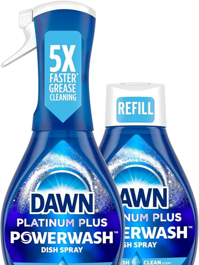 Simply spray directly on dishes or surfaces and rinse – no soaking needed.