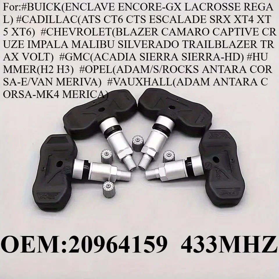 1Pcs/4Pcs OEM#20964159 #433MHZ TPMS/Tire Pressure Sensor For:#BUICK(ENCLAVE ENCORE-GX LACROSSE REGAL) #CADILLAC(ATS CT6 CTS ESCALADE SRX XT4 XT5 XT6) #CHEVROLET(BLAZER CAMARO CAPTIVE CRUZE IMPALA MALIBU SILVERADO TRAILBLAZER TRAX VOLT) #GMC #OPEL...