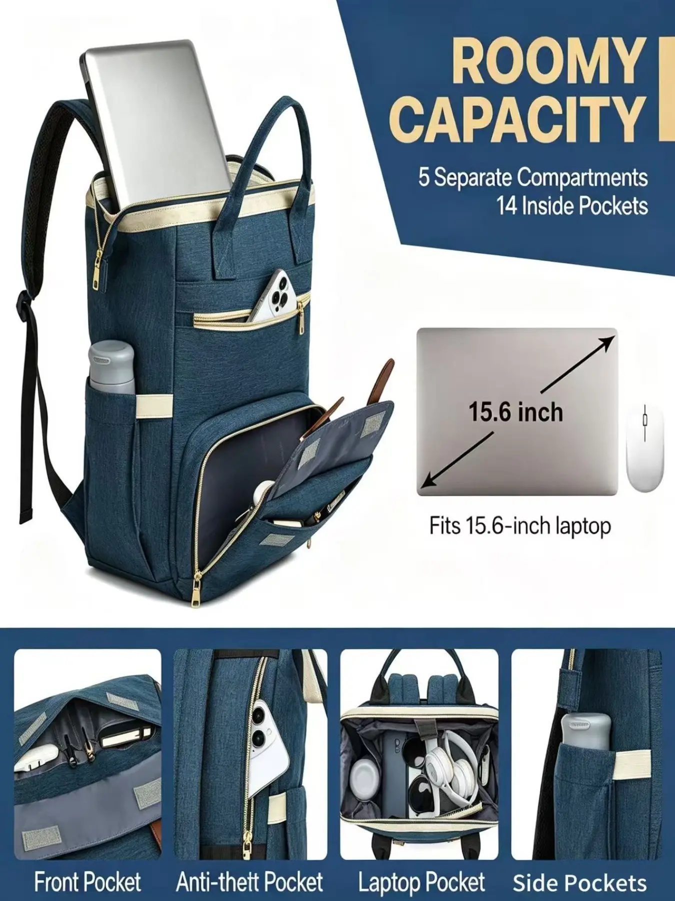 【Laptop Compartment】: Features a dedicated 15.6-inch laptop compartment for secure storage and easy access.
