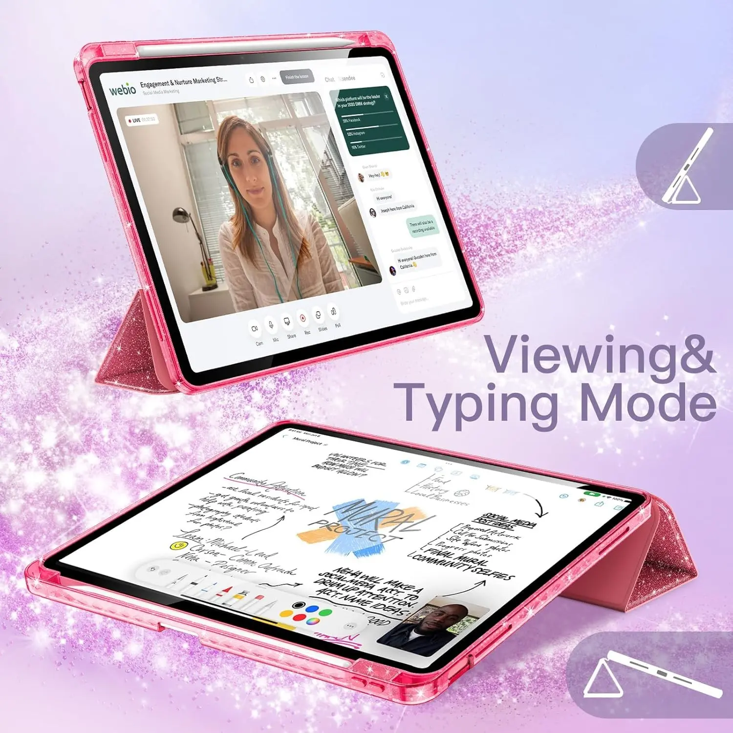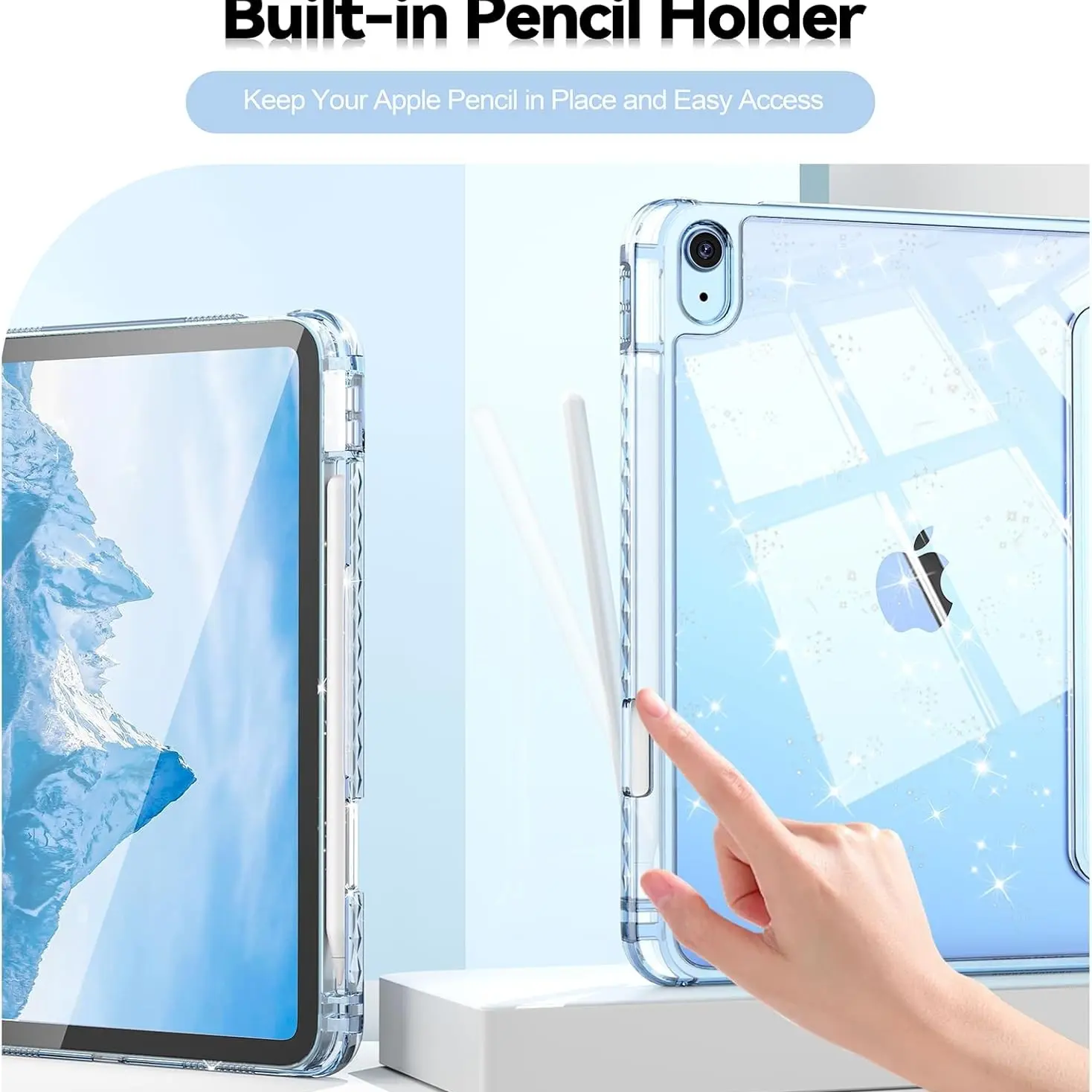 For iPad Case Compatible with A16 Models from The 11Th And 10Th Generations (2025/2022), As Well As iPad Air M2 M3 11inch/13inch Ipads, Ipad Pro M4 11inch/13inch, It Features a Holder for The Pencil, a Hard Clear Transparent Back Shell, a Soft TPU Shock