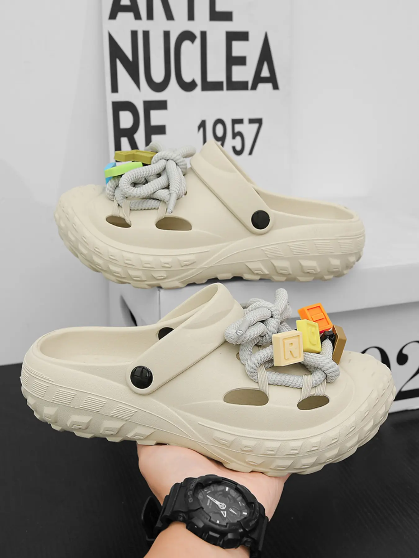 Light Oxygen Flow Cloud Holes Slippers, Eva Sole, Solid Pattern, Less Than Ankle Height, Fashionable All-Season Footwear