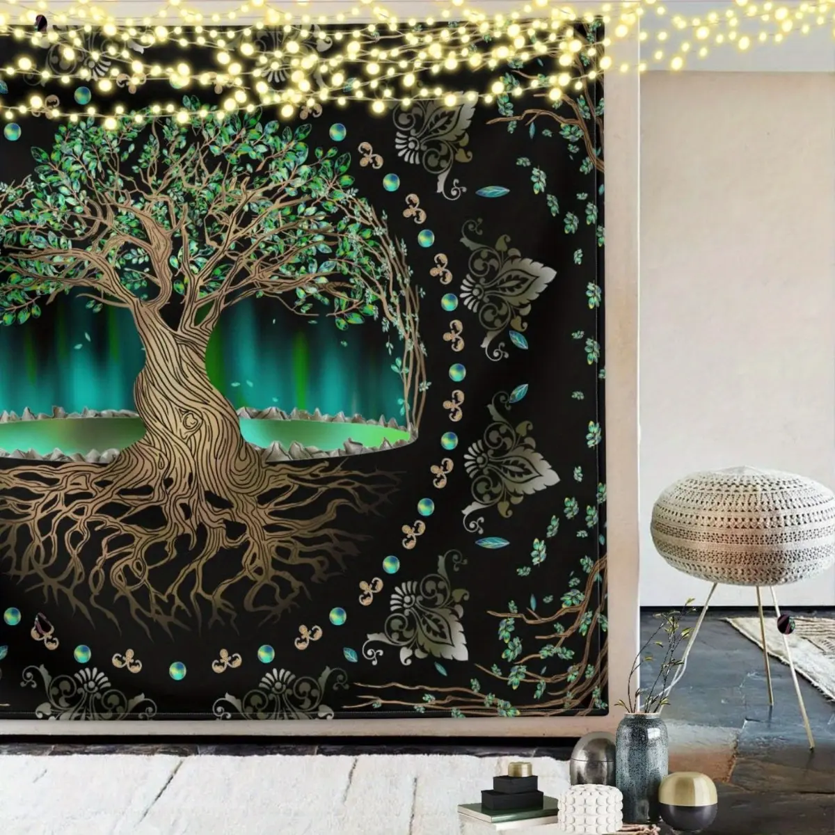 Large Tree of Life Tapestry Wall Hanging - Green Nature-Themed with Roots & Branches Design, Durable Fabric for Bedroom, for party & Festival Decor (Halloween/Christmas/Día de los Muertos) - Boho Decorations, Easy