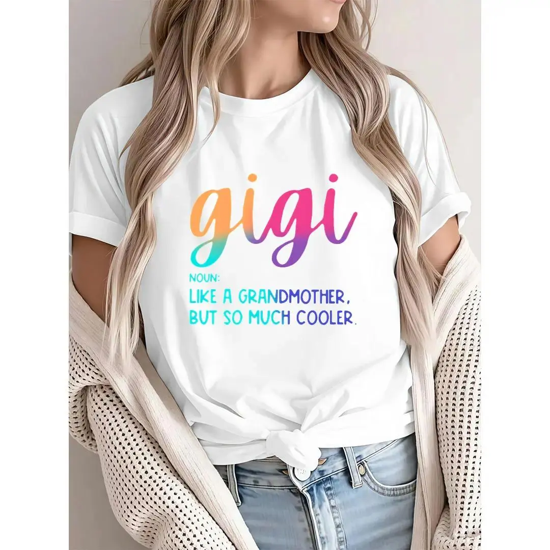 5. 95% Polyester 5% Elastane Casual Crew Neck T-Shirt with Gigi Alphabet Print, All Season Comfort Fit, Knit Fabric Tee