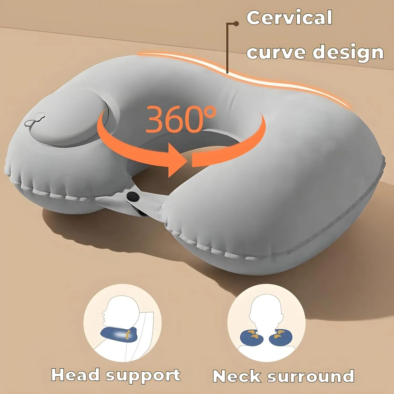 Inflatable Travel Pillow for Airplane Neck Support, Quick-Inflate Neck Pillow for Long Flights, Car, Office, Portable Bath Pillow